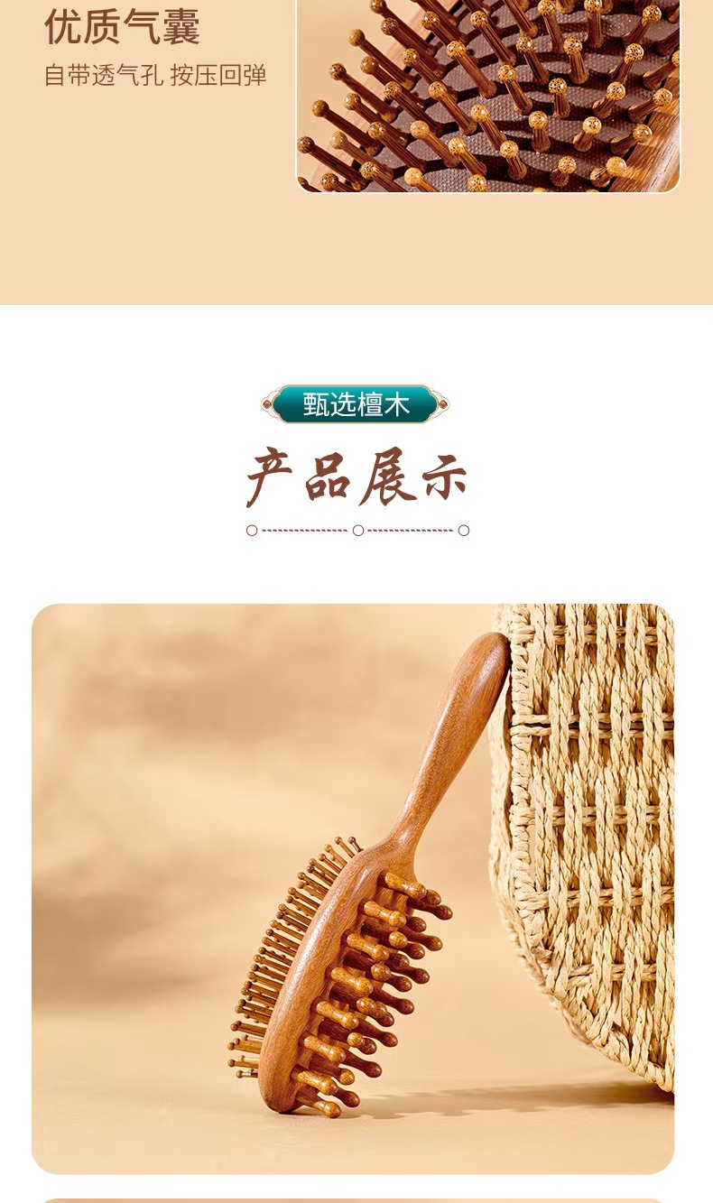 檀木钢针气囊按摩梳家用美发经络梳顺发女士专用高级感伴手礼木梳