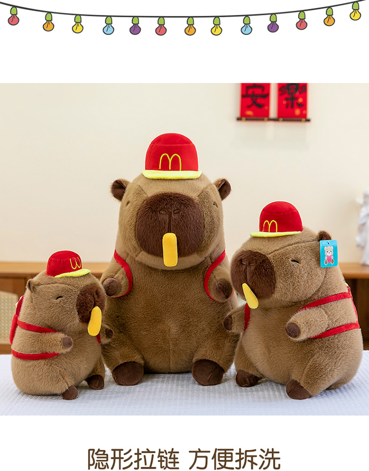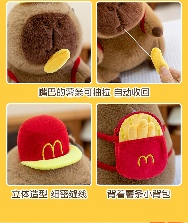 新しいフライドポテトバーガーバックパック、ぬいぐるみ人形、子供用バックパック、カピバラバックパック、クロスボーダー