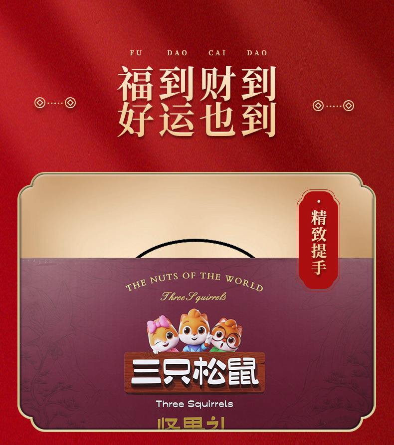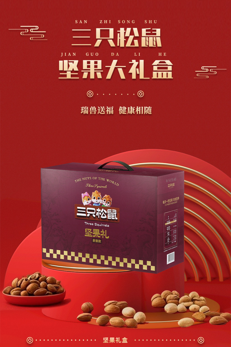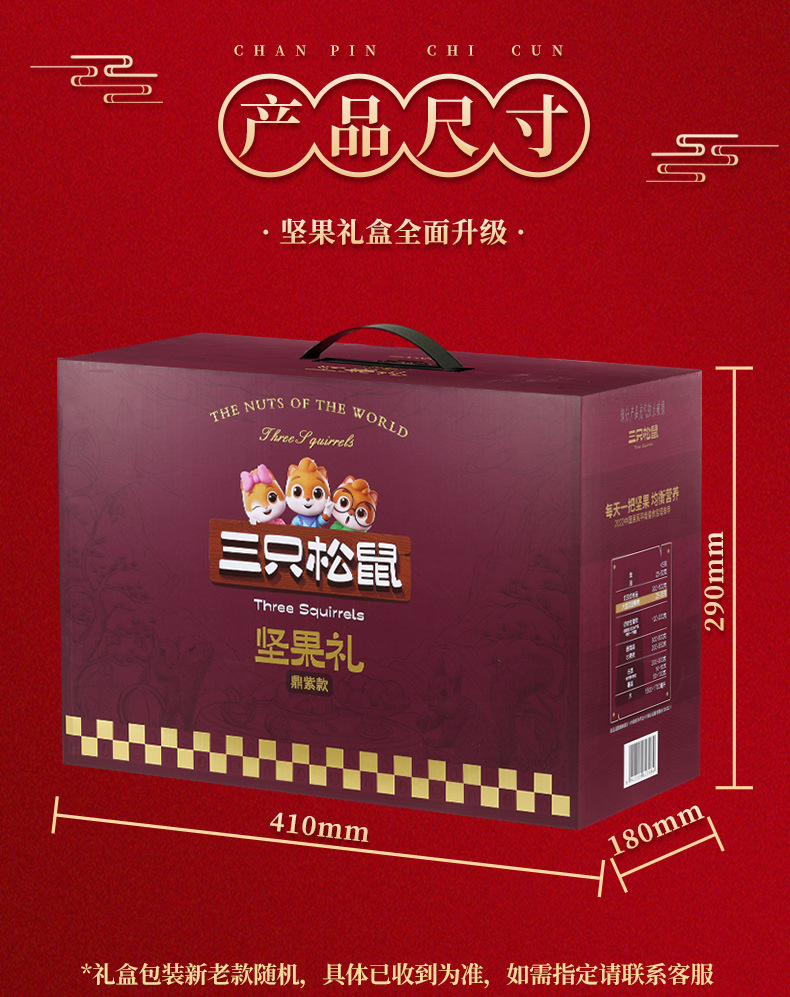 リス3匹の純粋なナッツのギフトボックス1620g/12袋のミックススナックのギフトバッグ