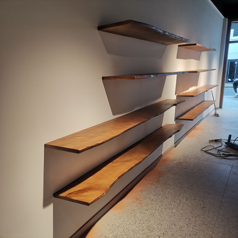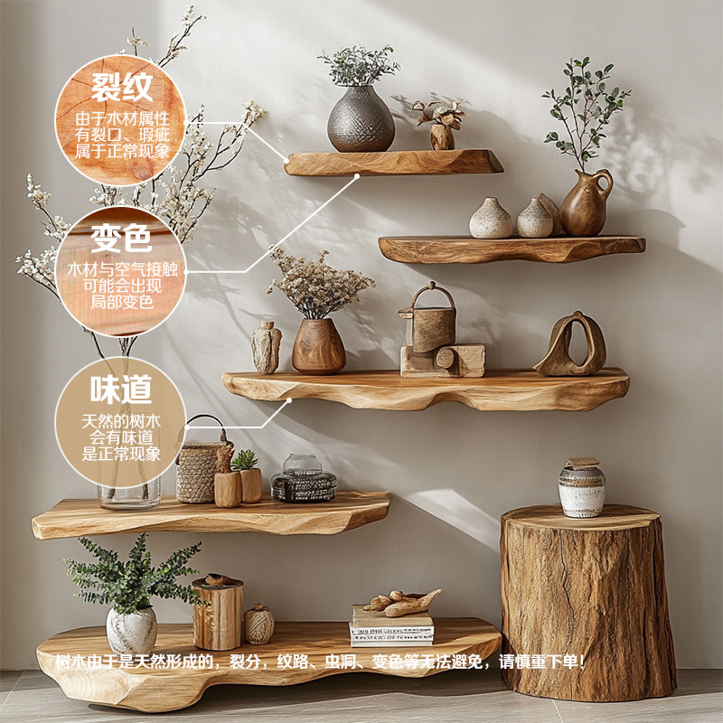 实木墙上置物架一字板置物架隔板置物板壁挂厨房原木异形板创意