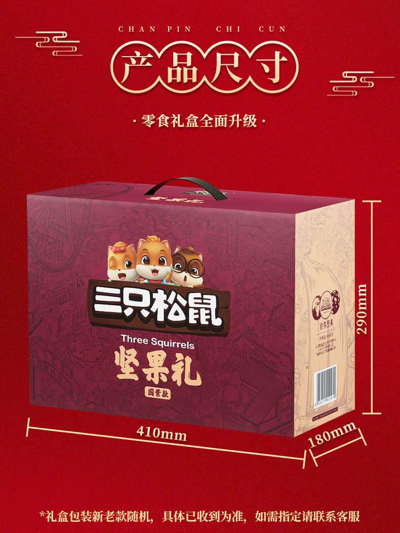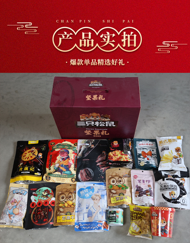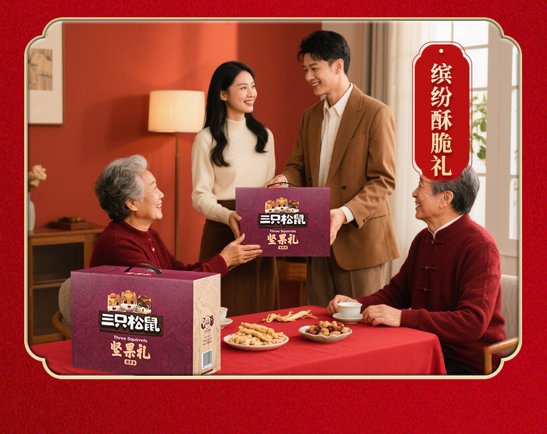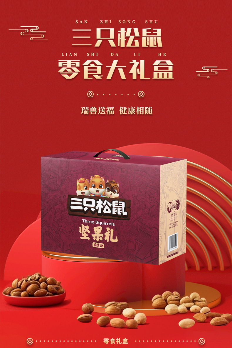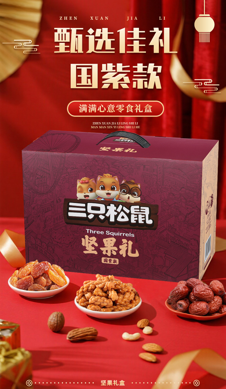 三只松鼠瑞红款坚果礼盒1501g/12袋健康果每日坚果干果大礼包包邮