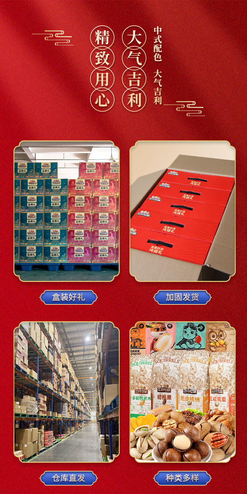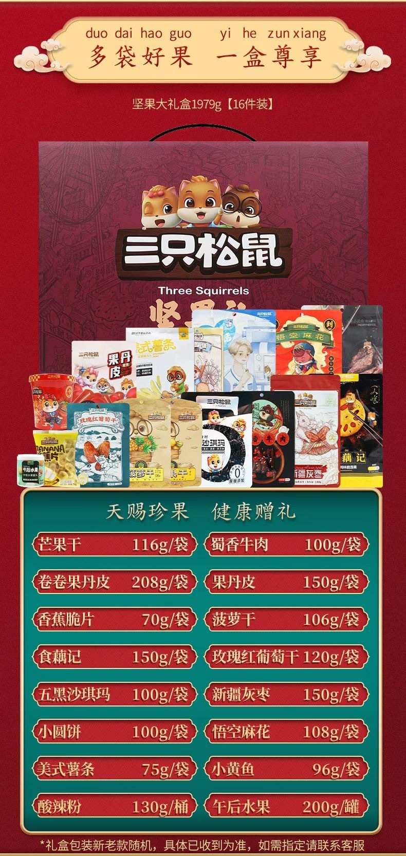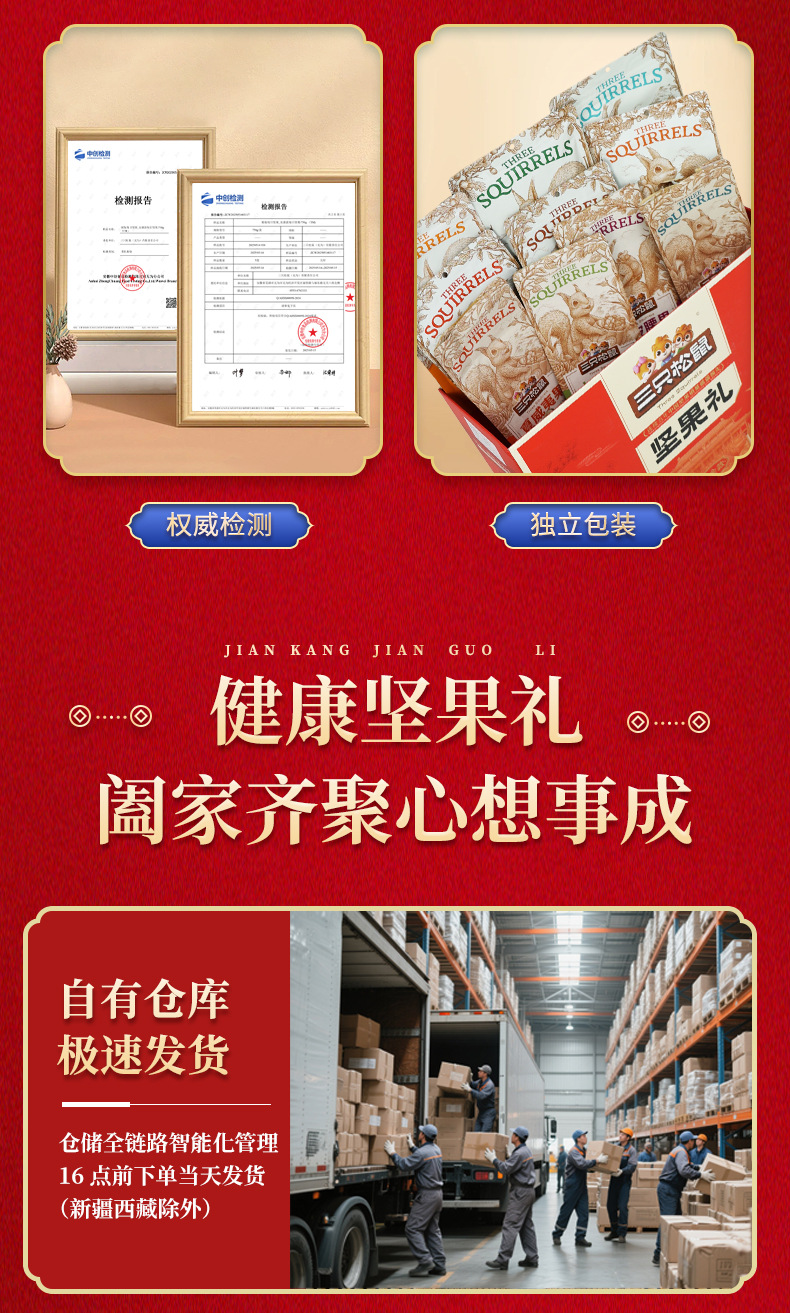 三只松鼠瑞红款坚果礼盒1501g/12袋健康果每日坚果干果大礼包包邮