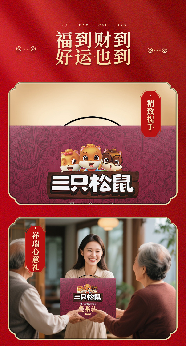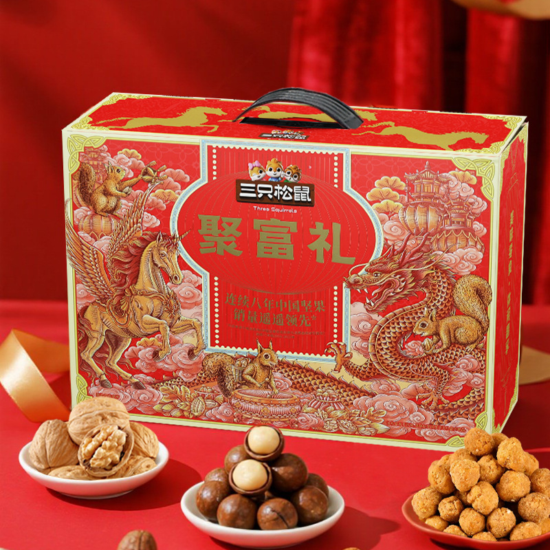 年货新款三只松鼠新年聚富礼坚果礼盒1275g/10袋装零食礼零食礼包