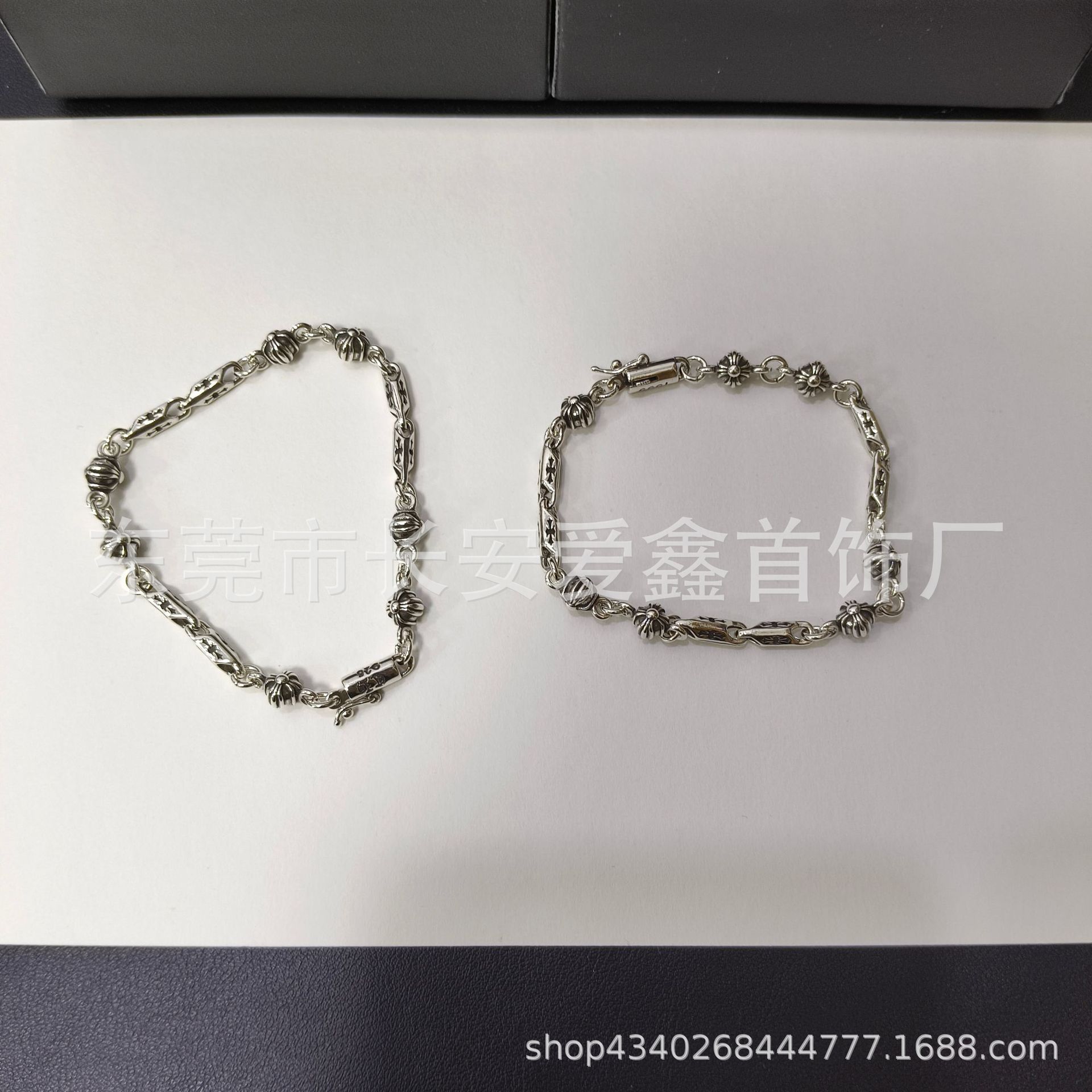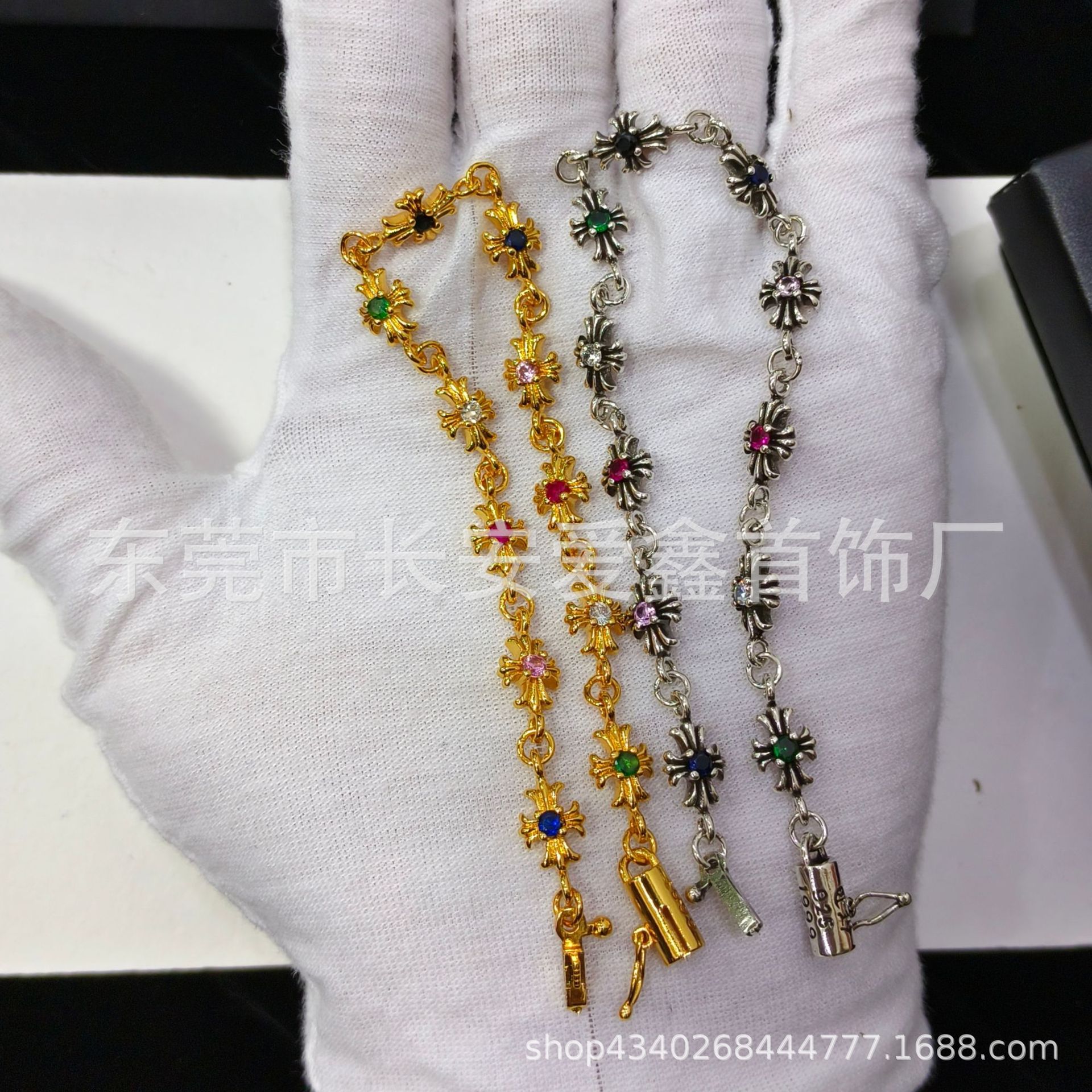 克罗伈复古做旧彩钻十字花细手链潮流嘻哈男女十字架手饰个性时尚