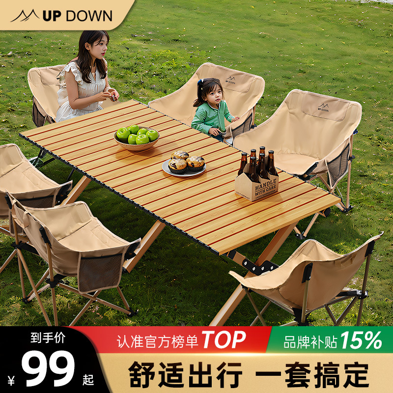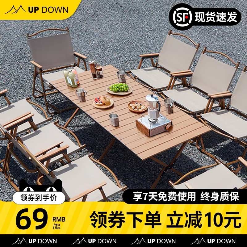 Updown キャンプテーブルと椅子エッグロールテーブル屋外折りたたみテーブルポータブルピクニックセットキャンプピクニック用品コンプリートセット