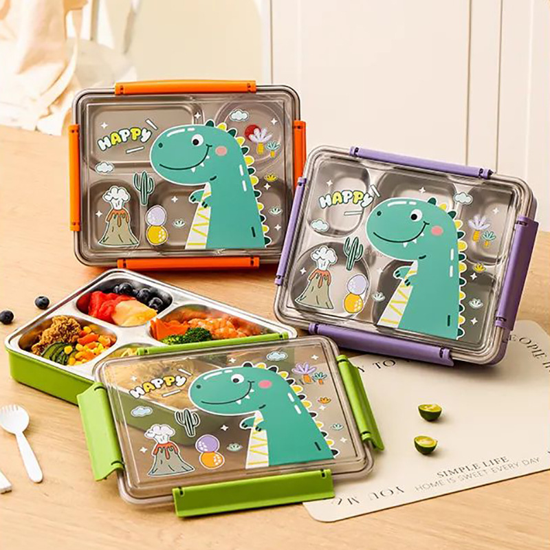 かわいい学生ランチボックス304ステンレス分格弁当箱小恐竜はご飯を持って弁当箱を密封して新鮮に保つ