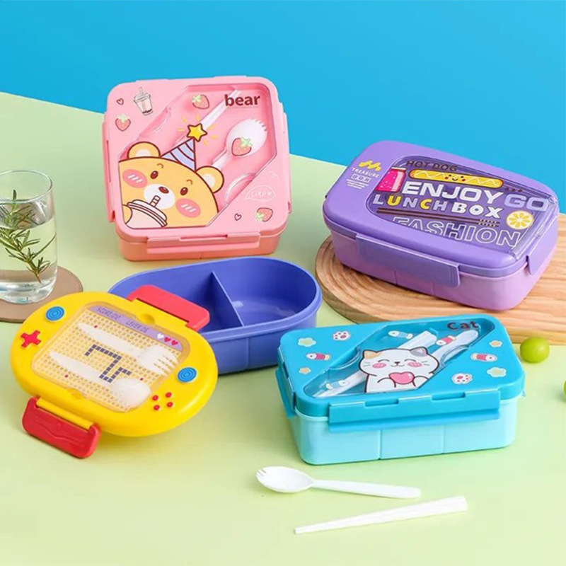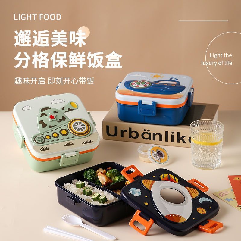国境を越えた漫画風シンプル密封食器スプーン仕切り付き食品プラスチック学生会社員持ち帰り弁当ランチ