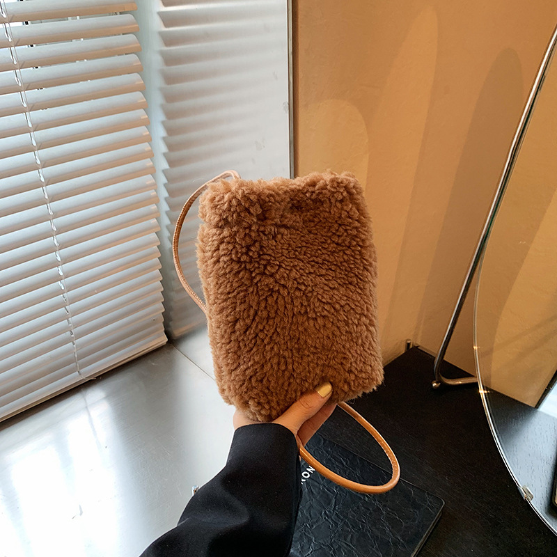 2025秋冬新款羊羔绒笑脸绣花斜挎包毛毛小挎包百搭斜挎手机包女包