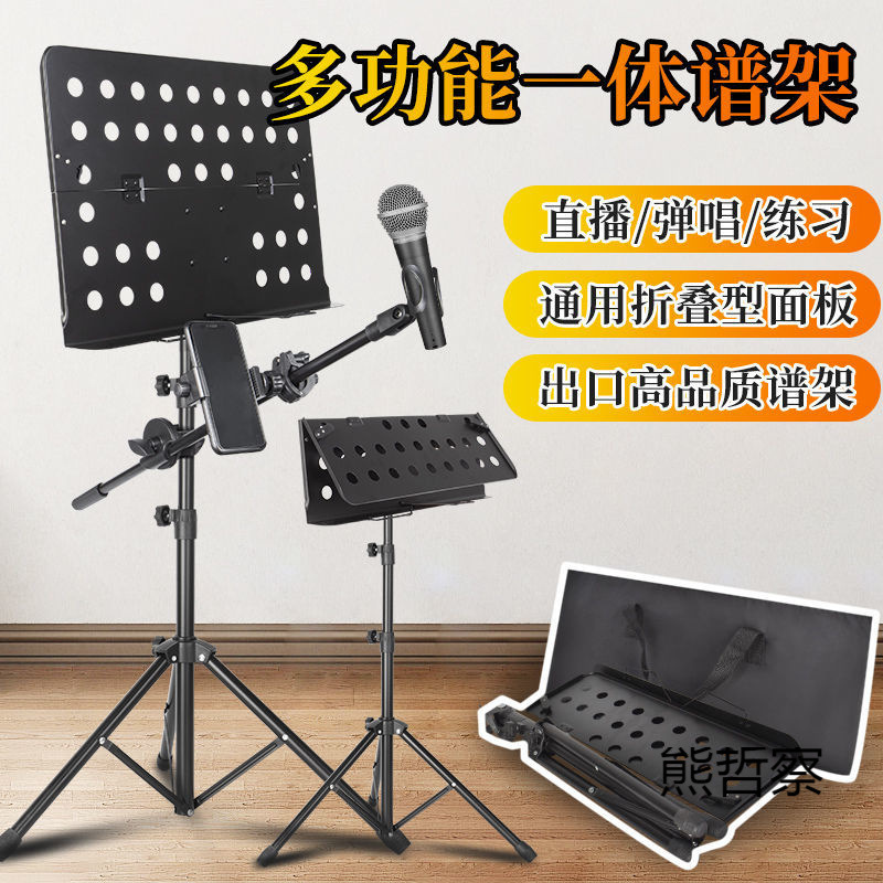 シルバーフィッシュ譜面台折りたたみポータブルギター楽譜スタンドマイク携帯電話オールインワン楽譜スタンドホームスタンド