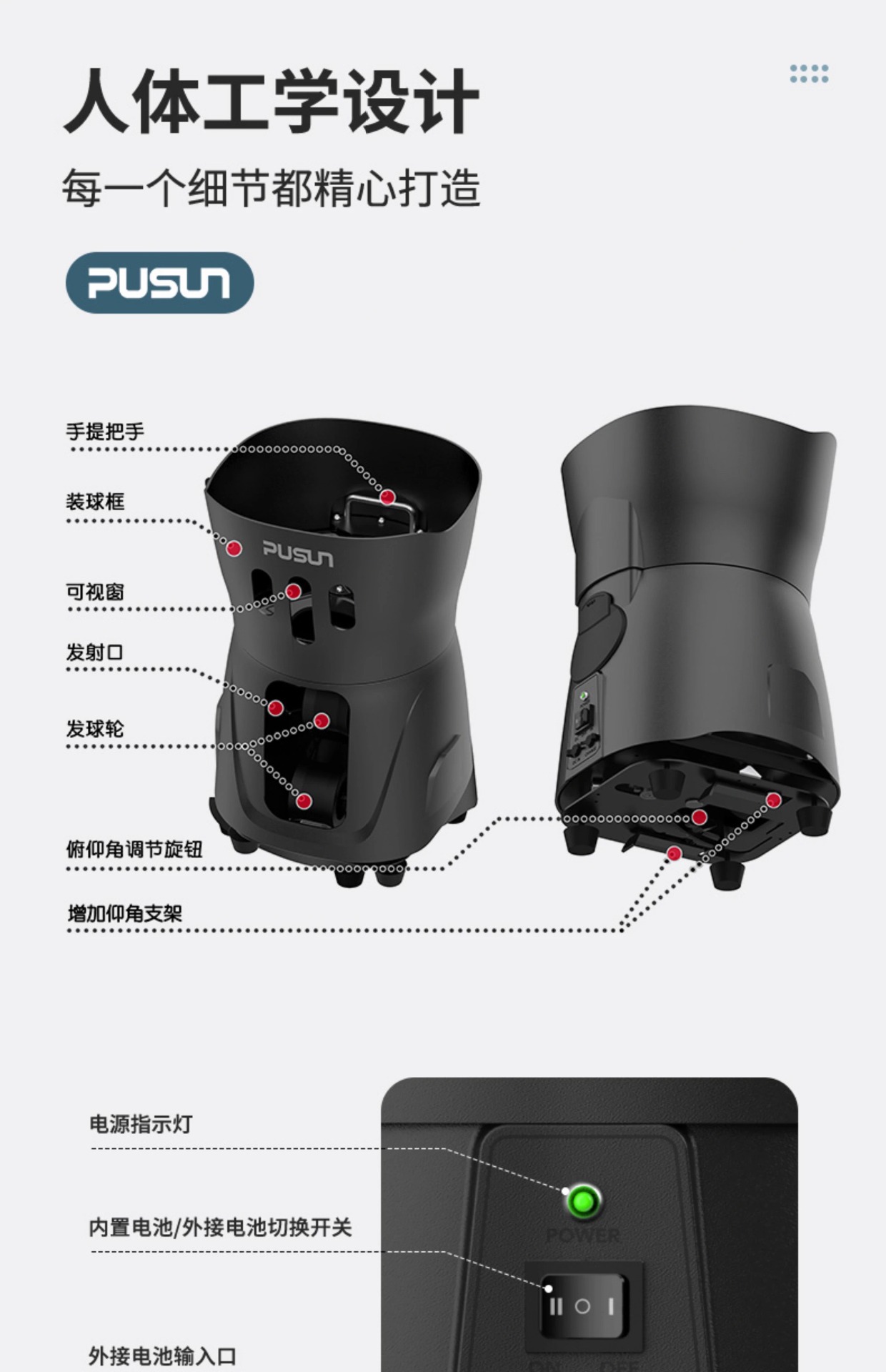 PUSUN新型PP-MiniProピクピコボールサーブ機室内練習超軽投げボール機練習機