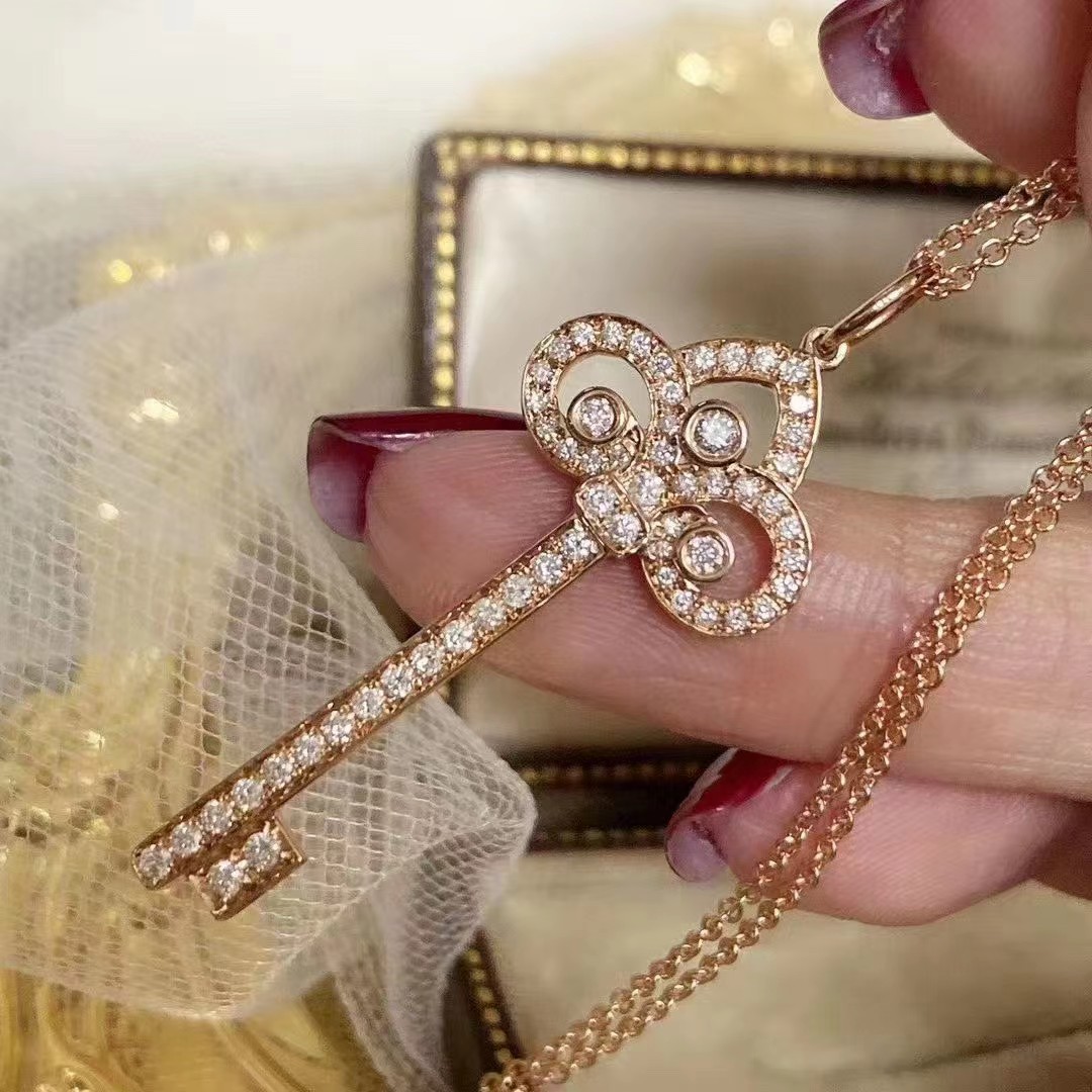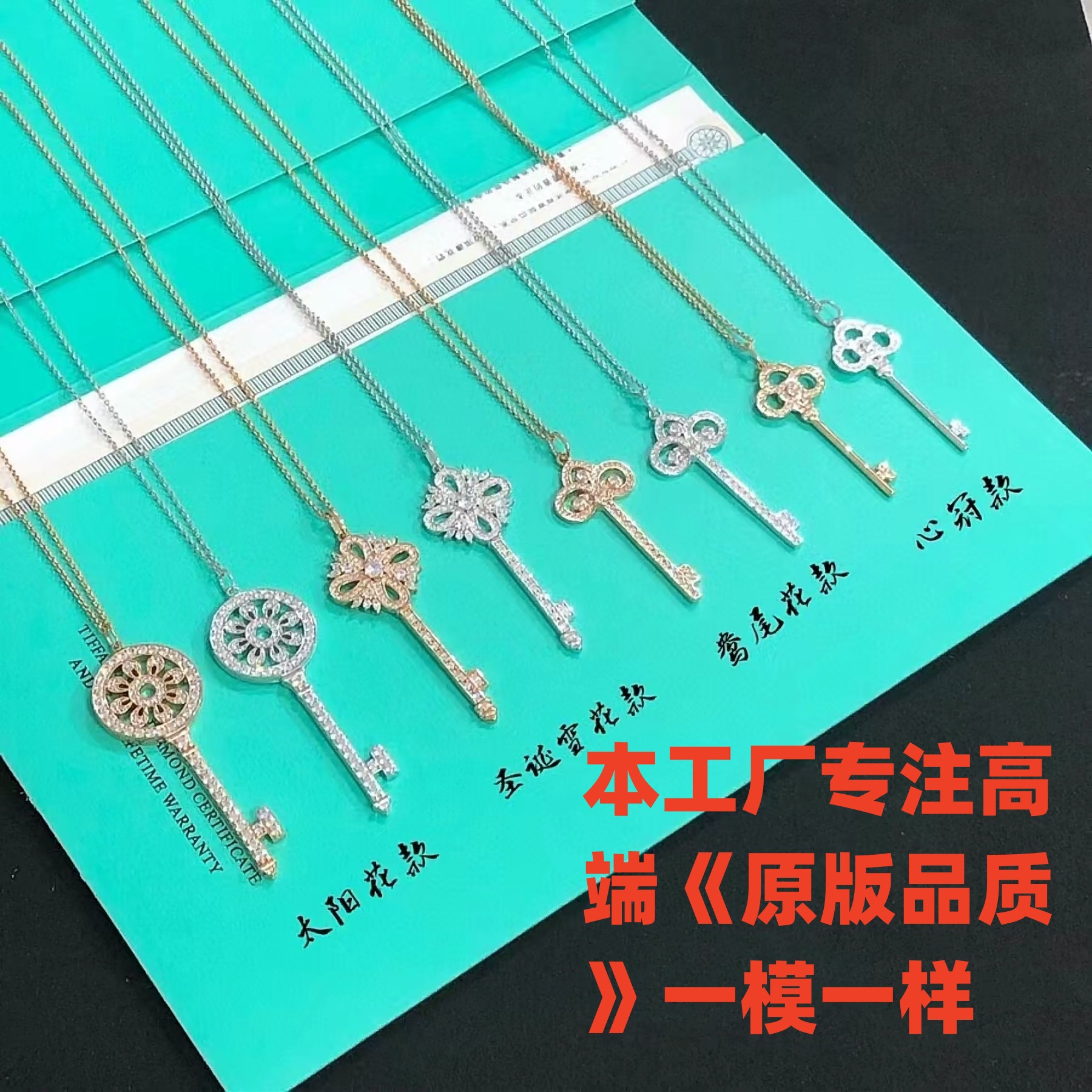 925純銀T家アイリスの鍵ネックレスメッキ18k真金ティ家満ドリル鍵セーターチェーン高バージョン