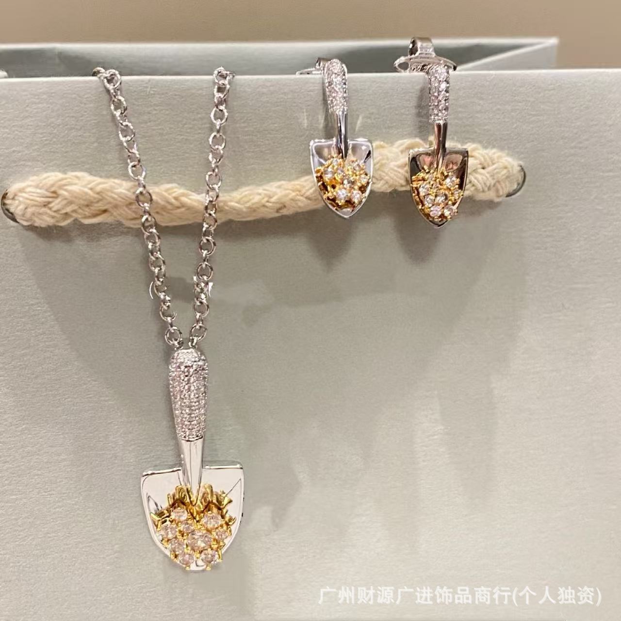 925纯银高版本西太后小铲子项链跨境爆款满钻分色产子i耳钉锁骨链