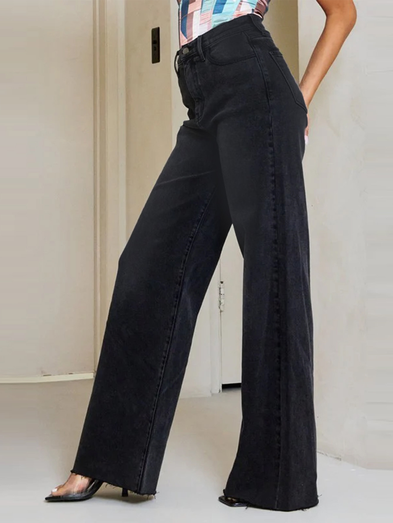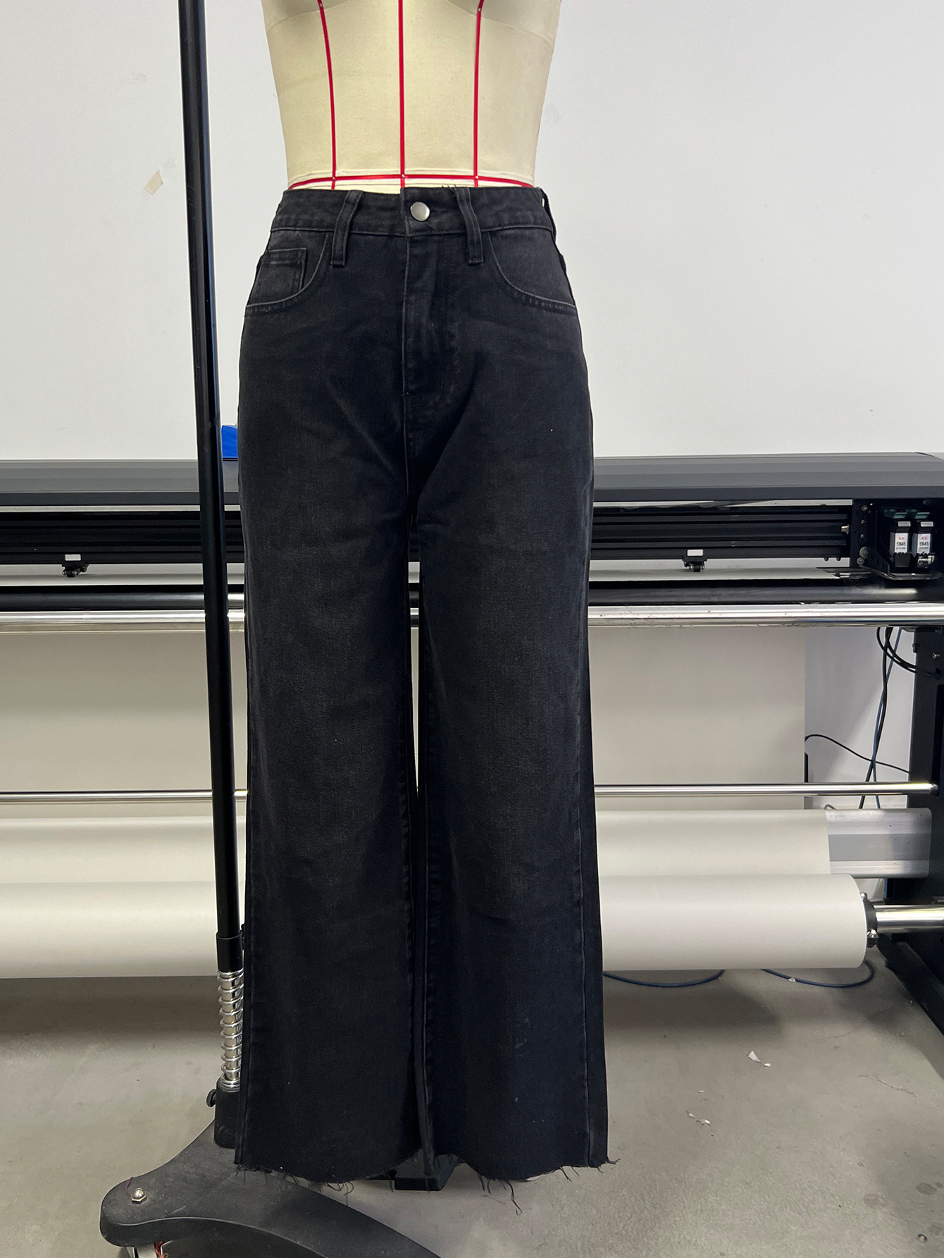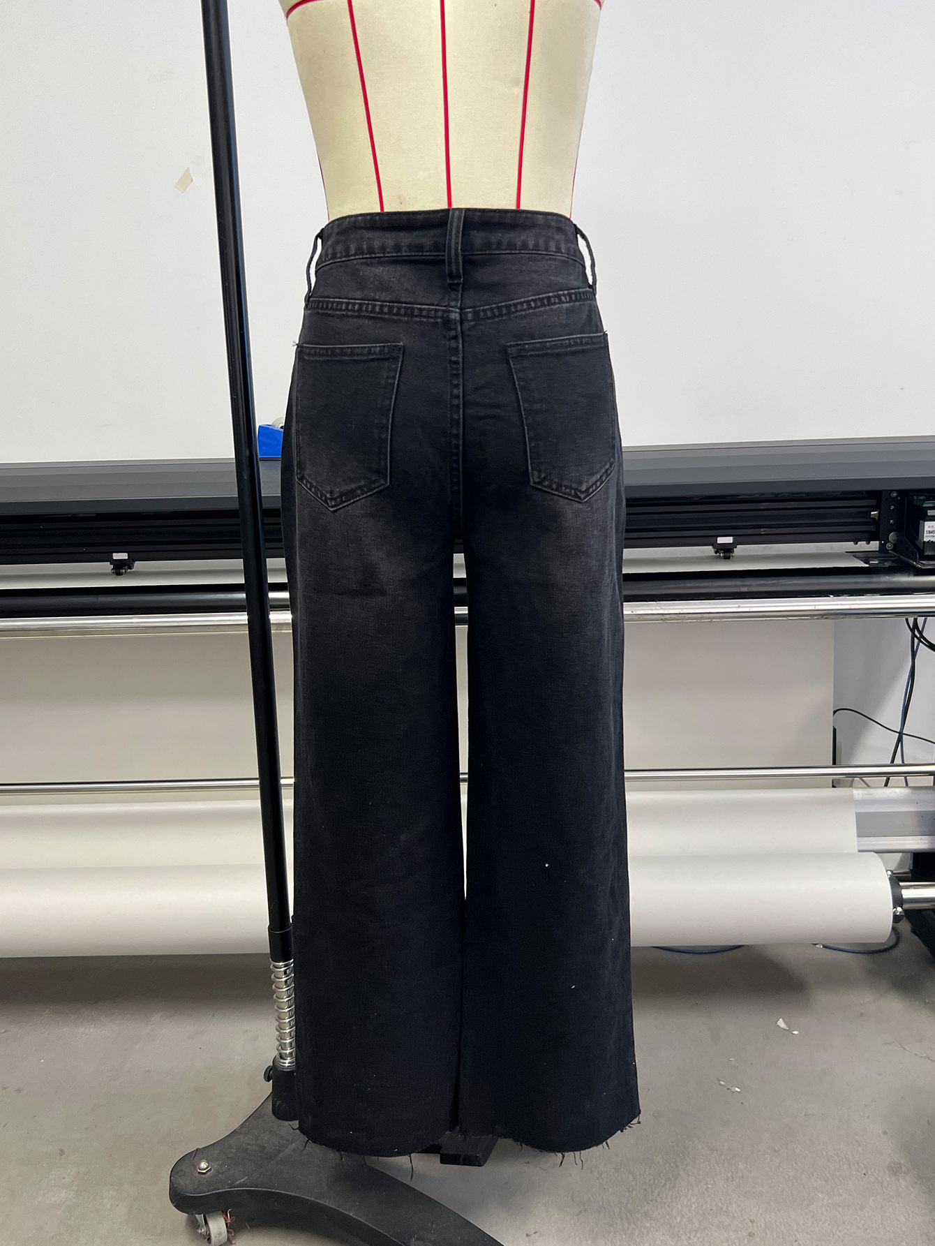 2024欧米アマゾンクロスボーダー新型レトロギャルゆるい黒ハイウエストストレートジーンズ女
