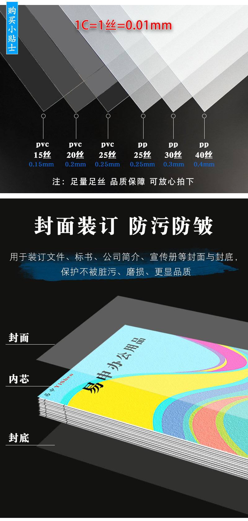 製本フィルムpetファイルマークシール紙a4透明研磨pp紙pvcクリップバインダープラスチックシールa3