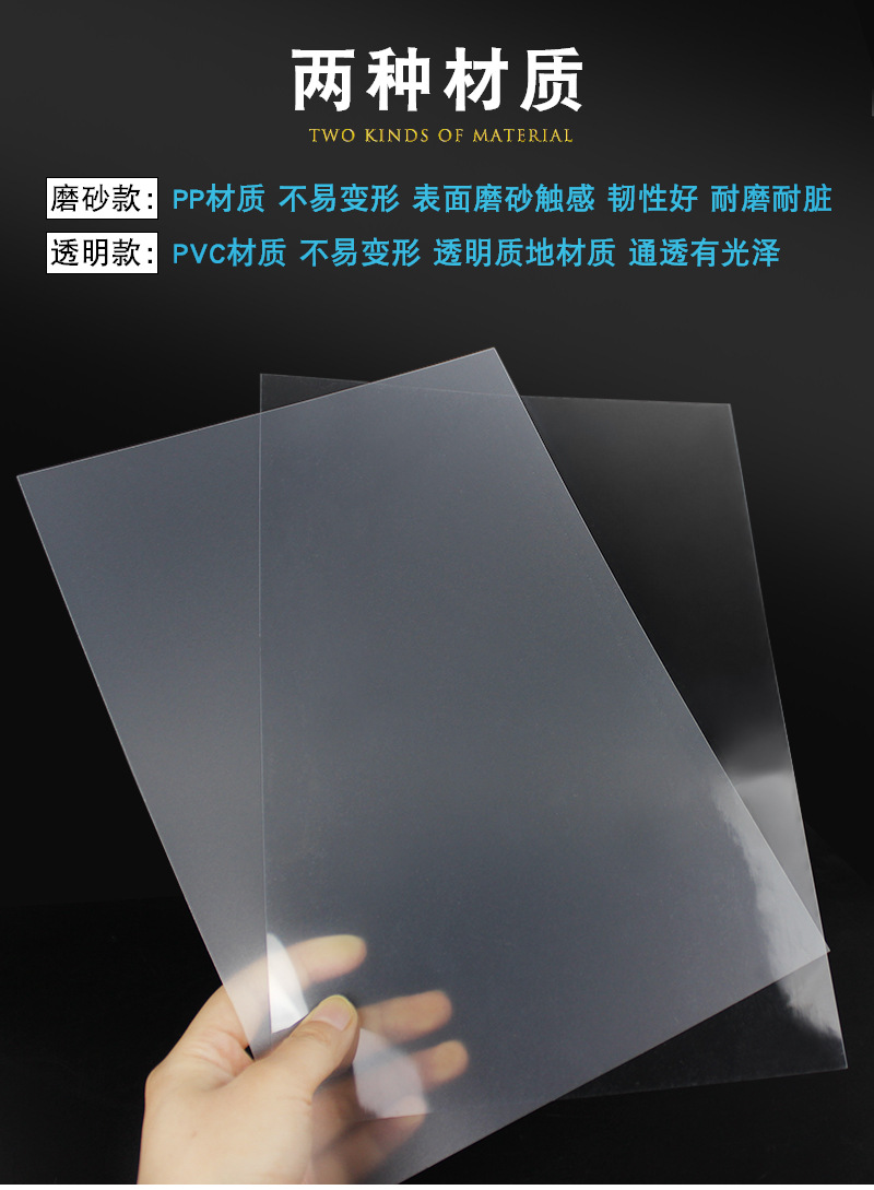 PVCプラスチックシートA4書類製本フィルム20糸契約書PET透明表紙PPフロストカバー防水