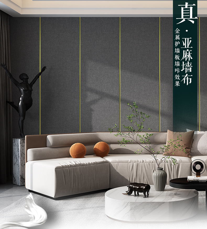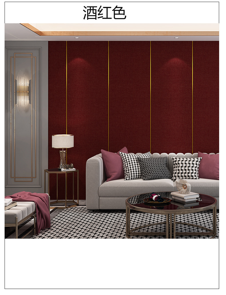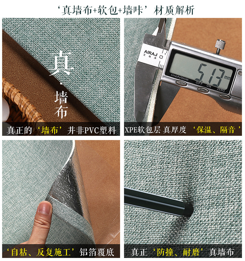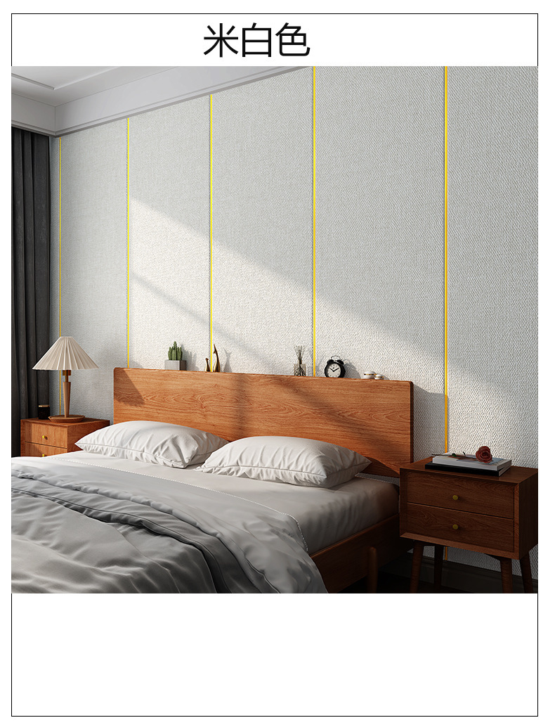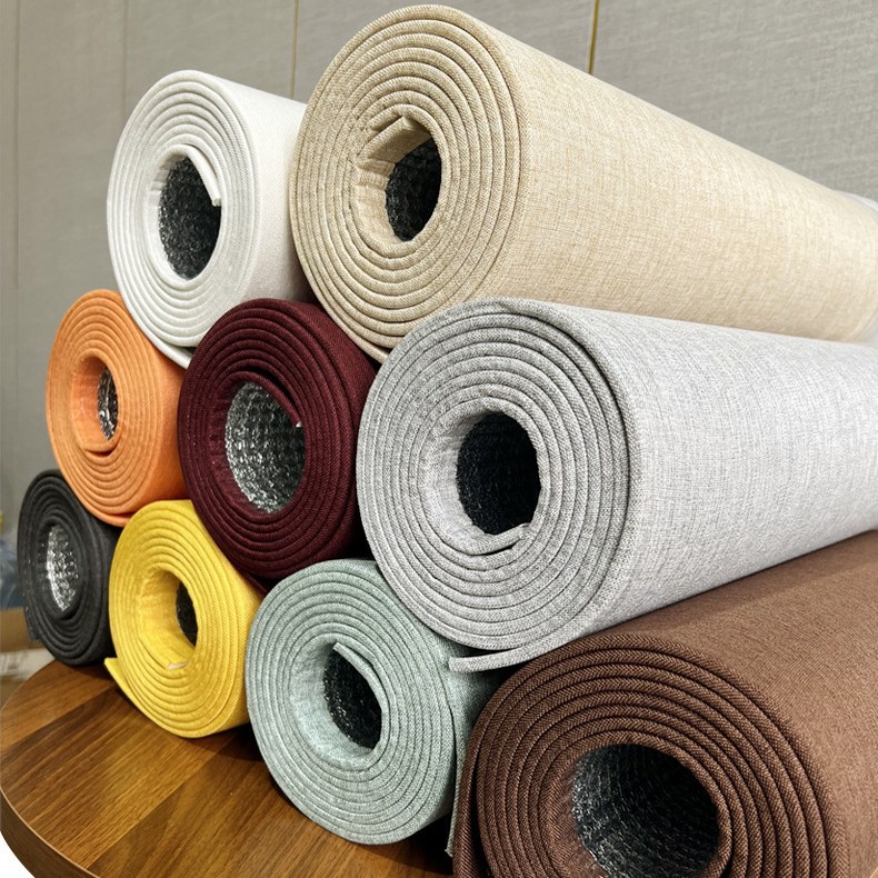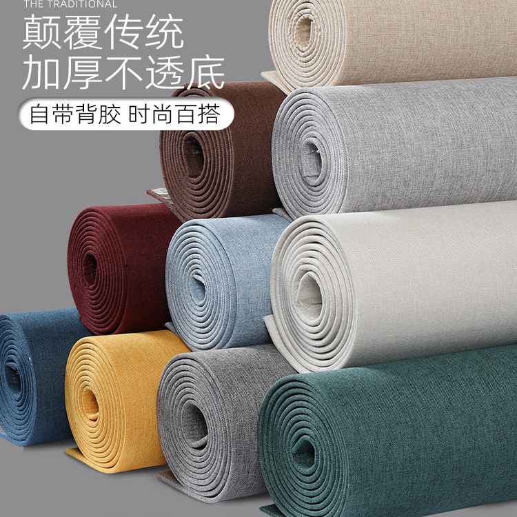 亚麻加厚墙布自粘墙纸床头软包墙板电视背景墙贴防水卧室装饰壁纸