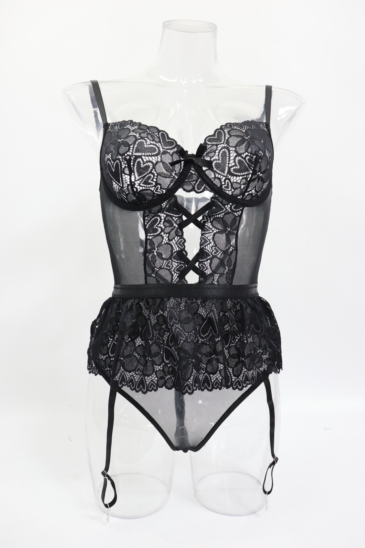 ヨーロッパ駅のアマゾンの対外貿易の商品源欧米のレースの透視の趣味の下着の前でフォークのセクシーなサスペンダーのスカートの現物を開けます。