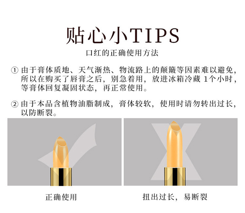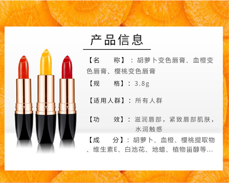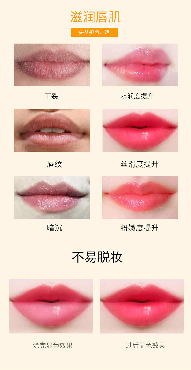 本品のカロチンの変色リップクリームは水を補って唇を保湿します。