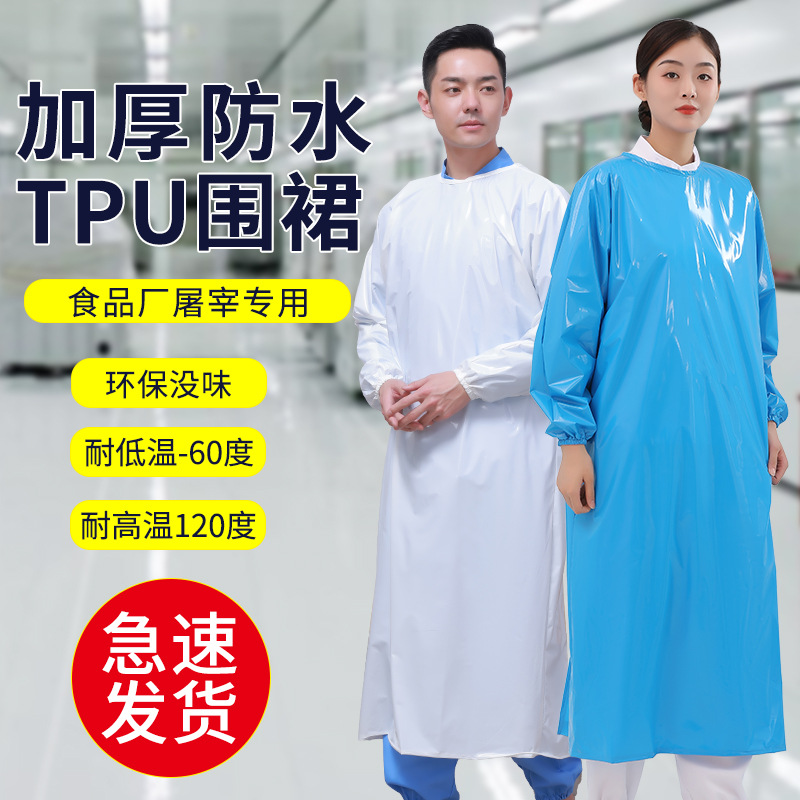 免洗新款TPU罩衣厨房防水做饭TPU长袖围裙男女家用防油水产工作服
