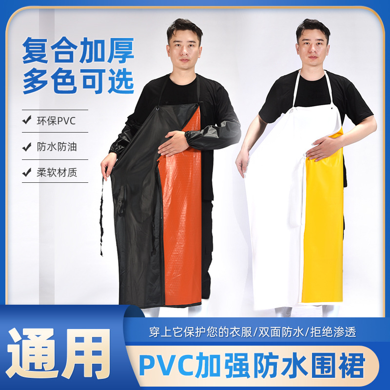 PVC黑色防水防油加厚食堂餐饮厨房耐酸碱加长水产家用男女围裙