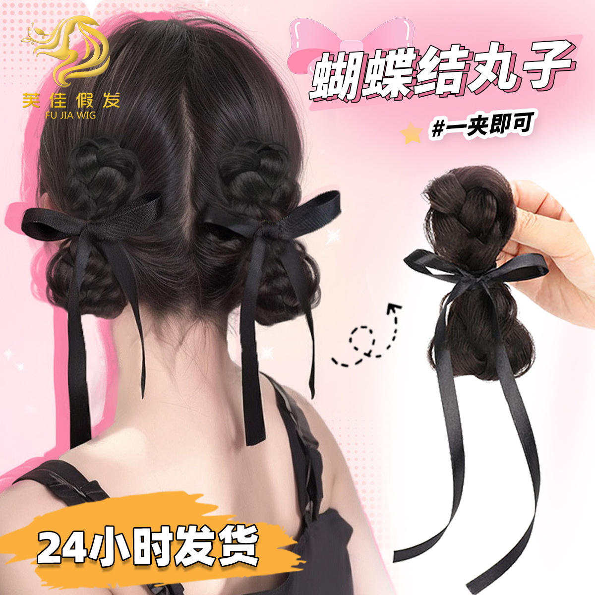 韓系リボンリボン蝶結びの団子の髪はかつらを挟みます。