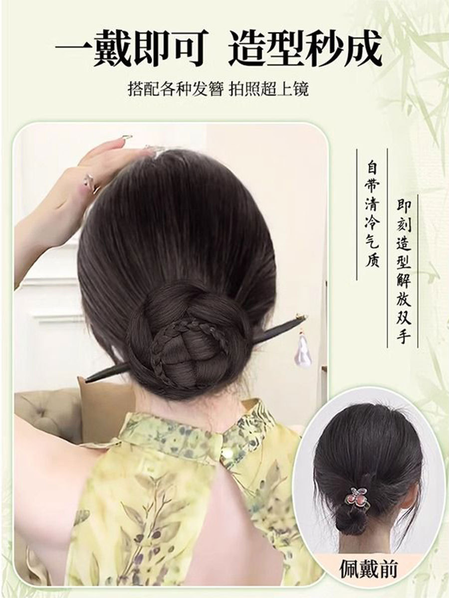 国風新中国式かつら女盤発器淑婉曲気質丸子髪包髪かんざしかつら