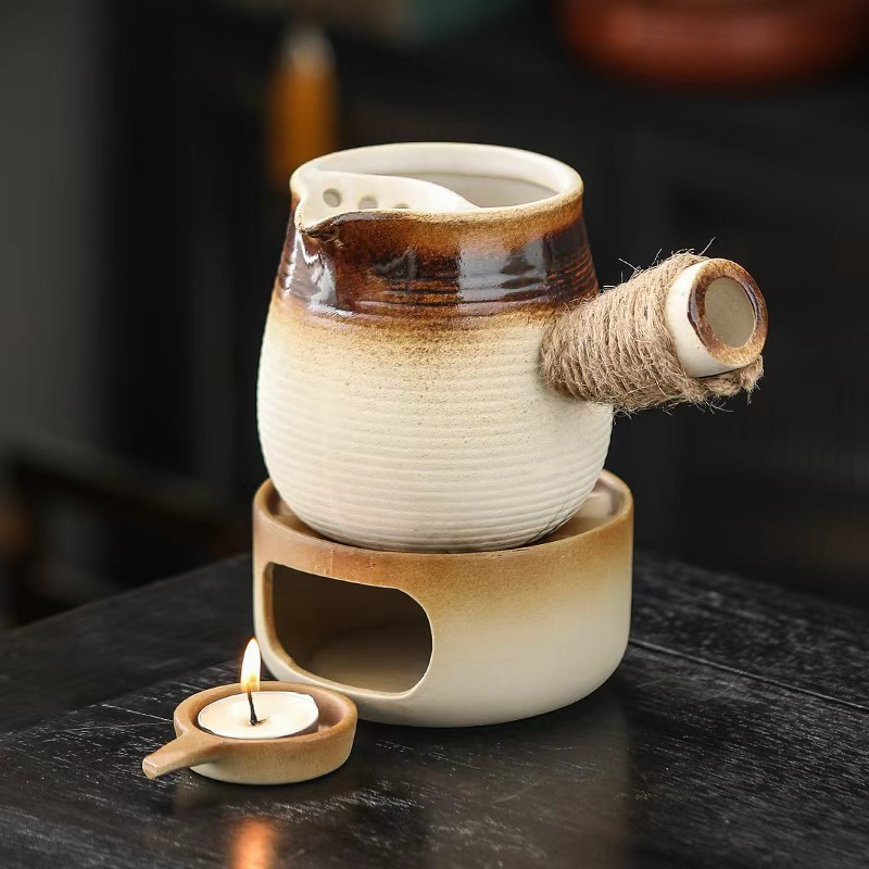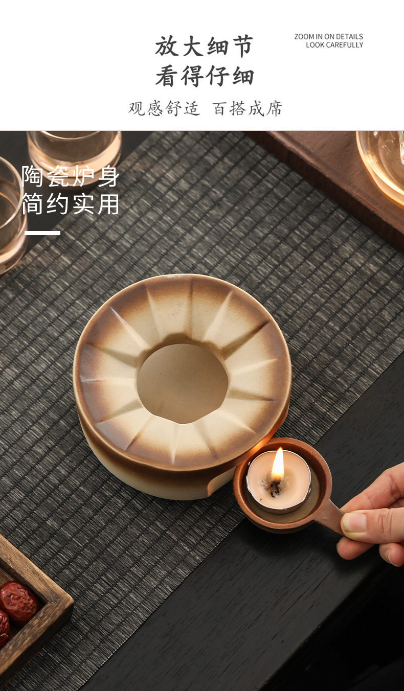 ティーポット粗陶茶器高級温茶炉ろうそく柴焼煮茶炉花茶小温茶器柴焼囲炉煮茶