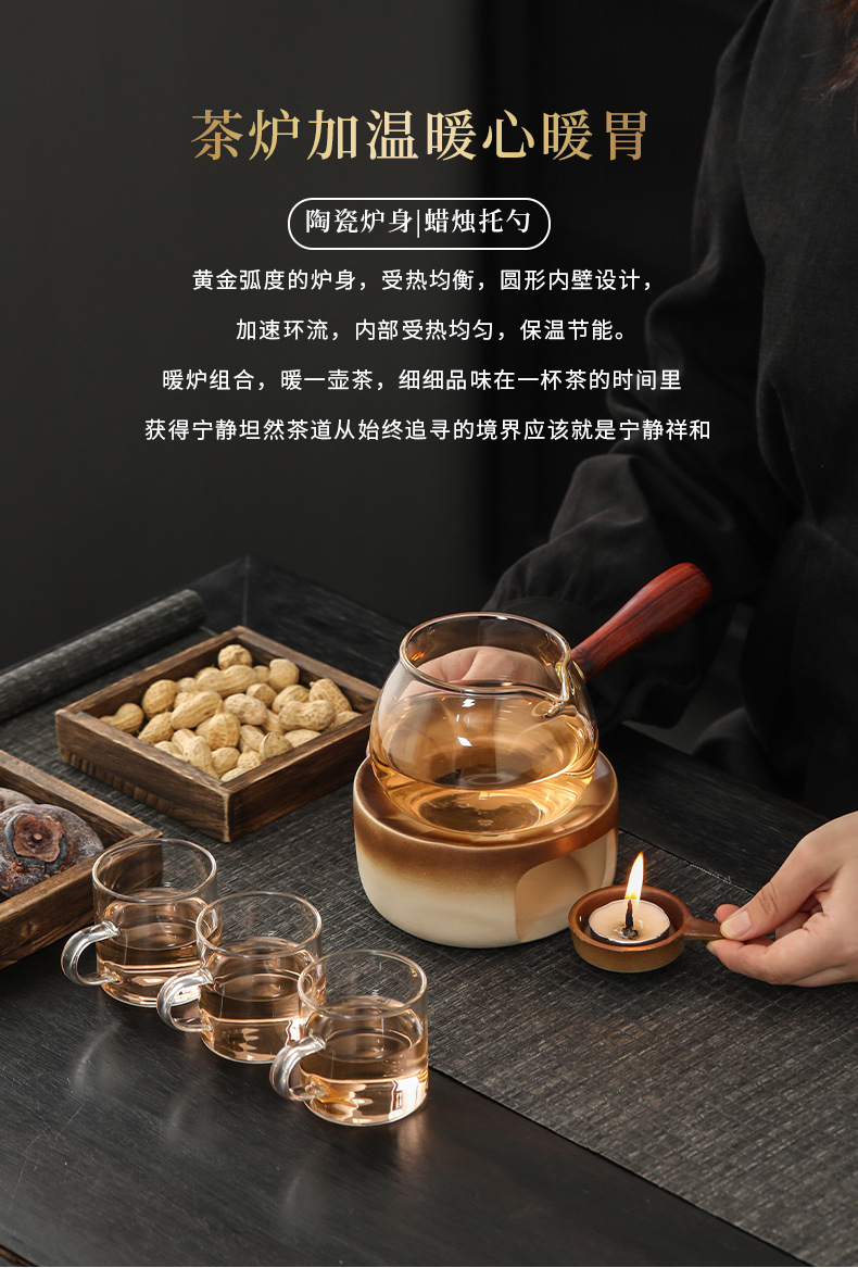 ろうそく加熱保温耐熱ガラスポット日本式温茶炉セット温茶器囲炉煮茶家庭用暖茶炉