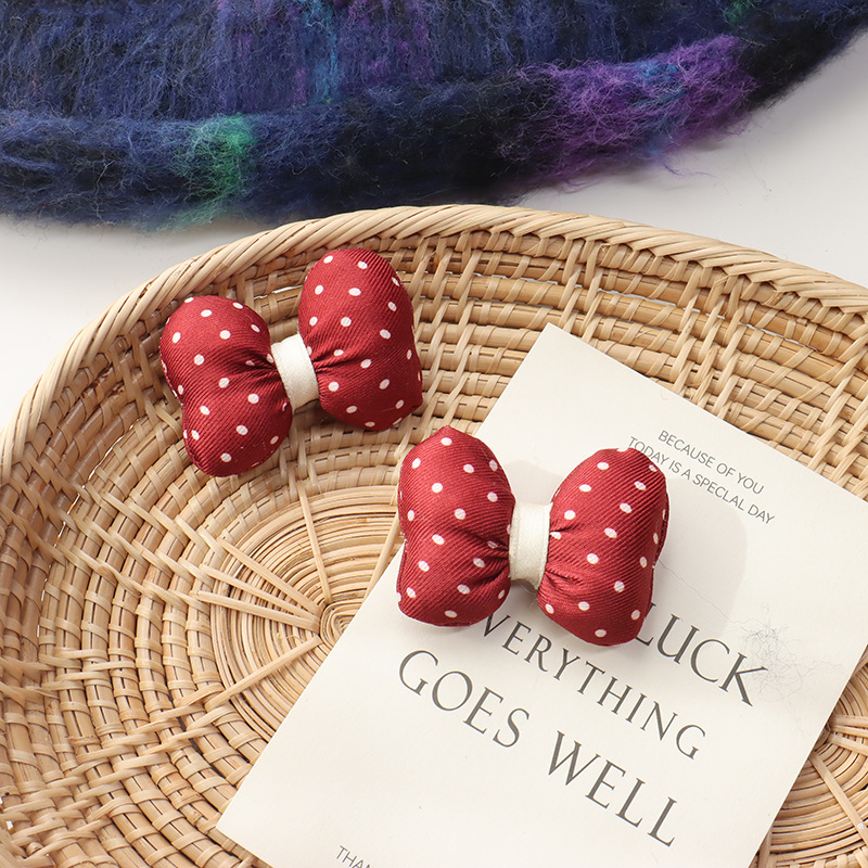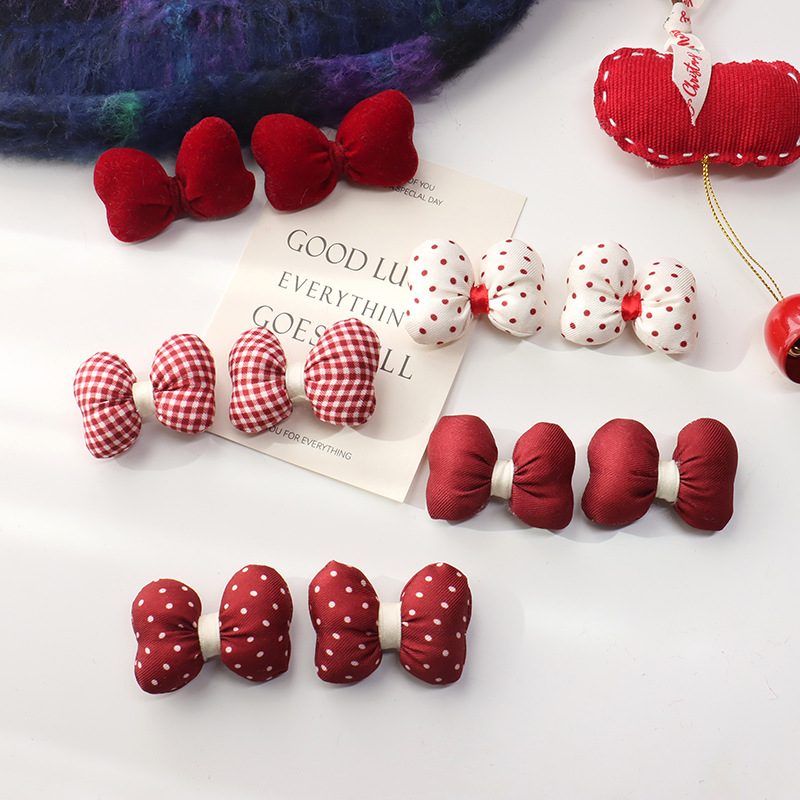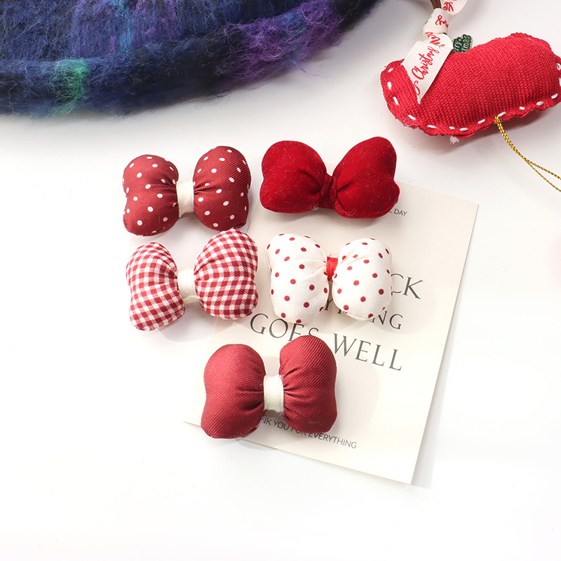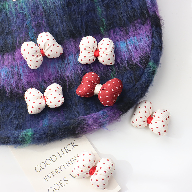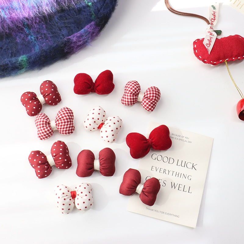 新年の赤い波点の蝶結びは綿の立体のベルベットの髪飾りを充填します。