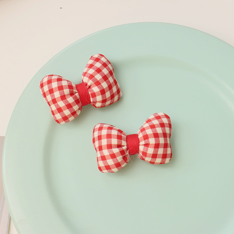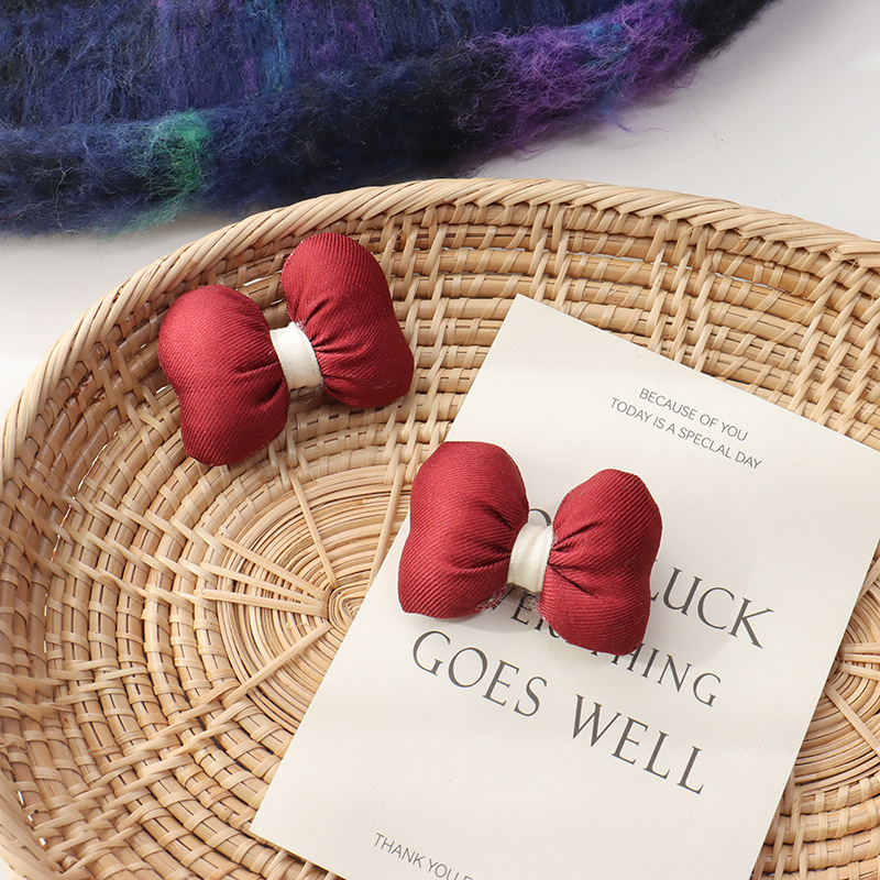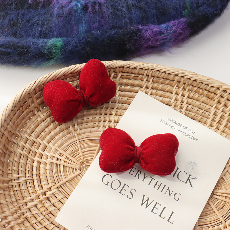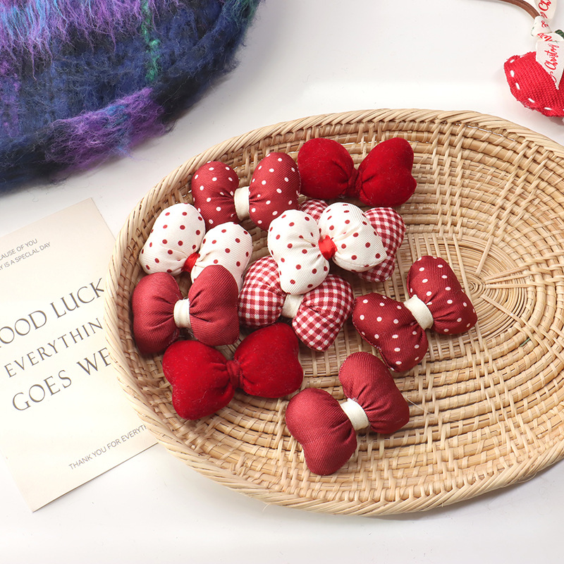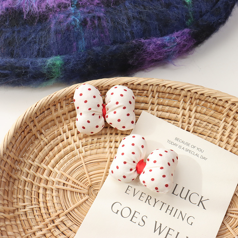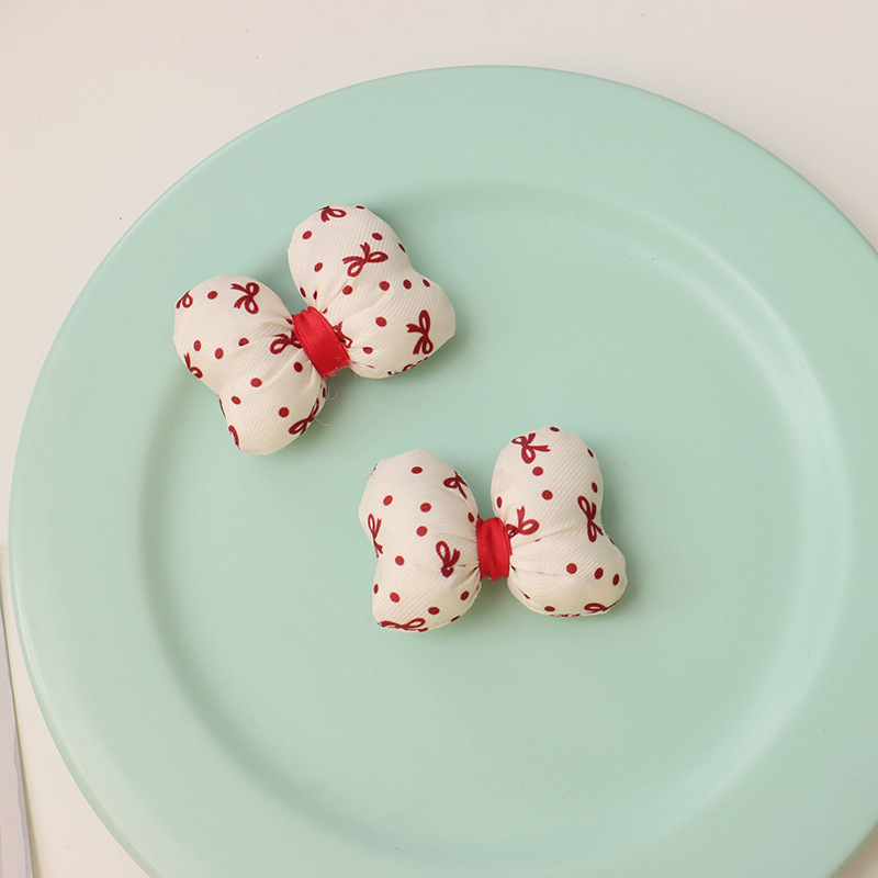 新年の赤い波点の蝶結びは綿の立体のベルベットの髪飾りを充填します。