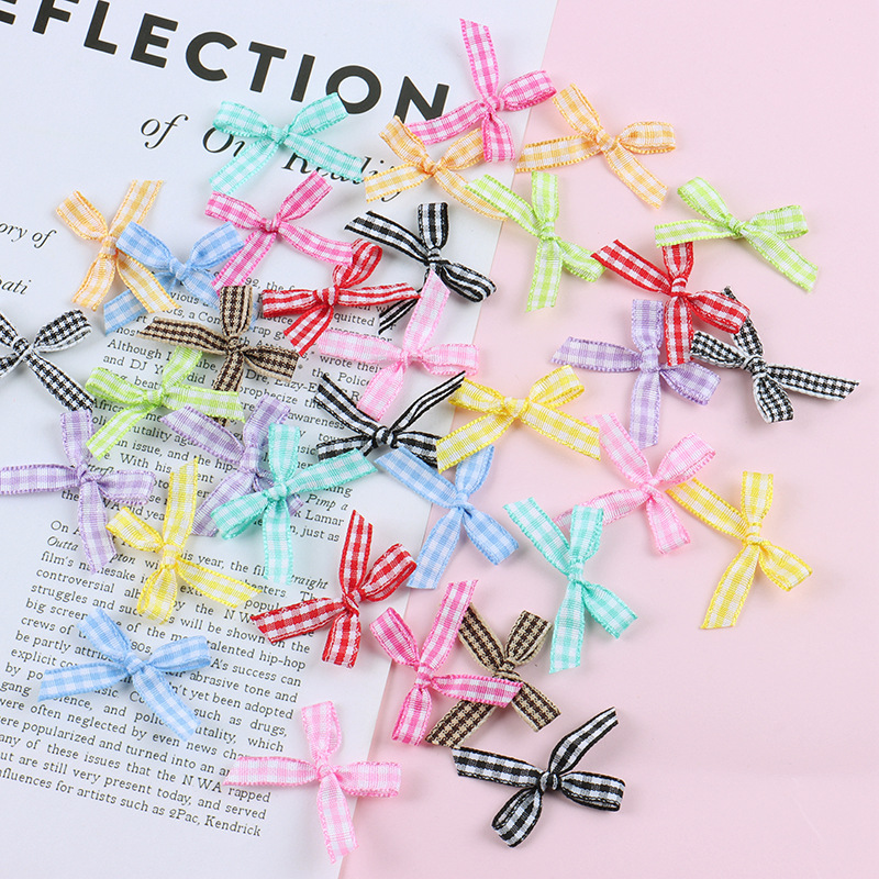 現物の韓国版の小さい格子の蝶結びのdiyリボンの蝶結びの服装の補助材料の手作りは腰の蝶結びを包みます。