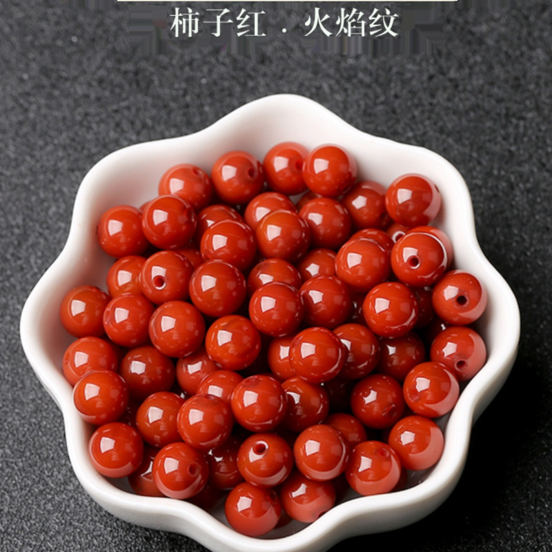 本場7a天然川料満肉南紅瑪瑙散珠柿紅炎紋diy手作りアクセサリービーズ