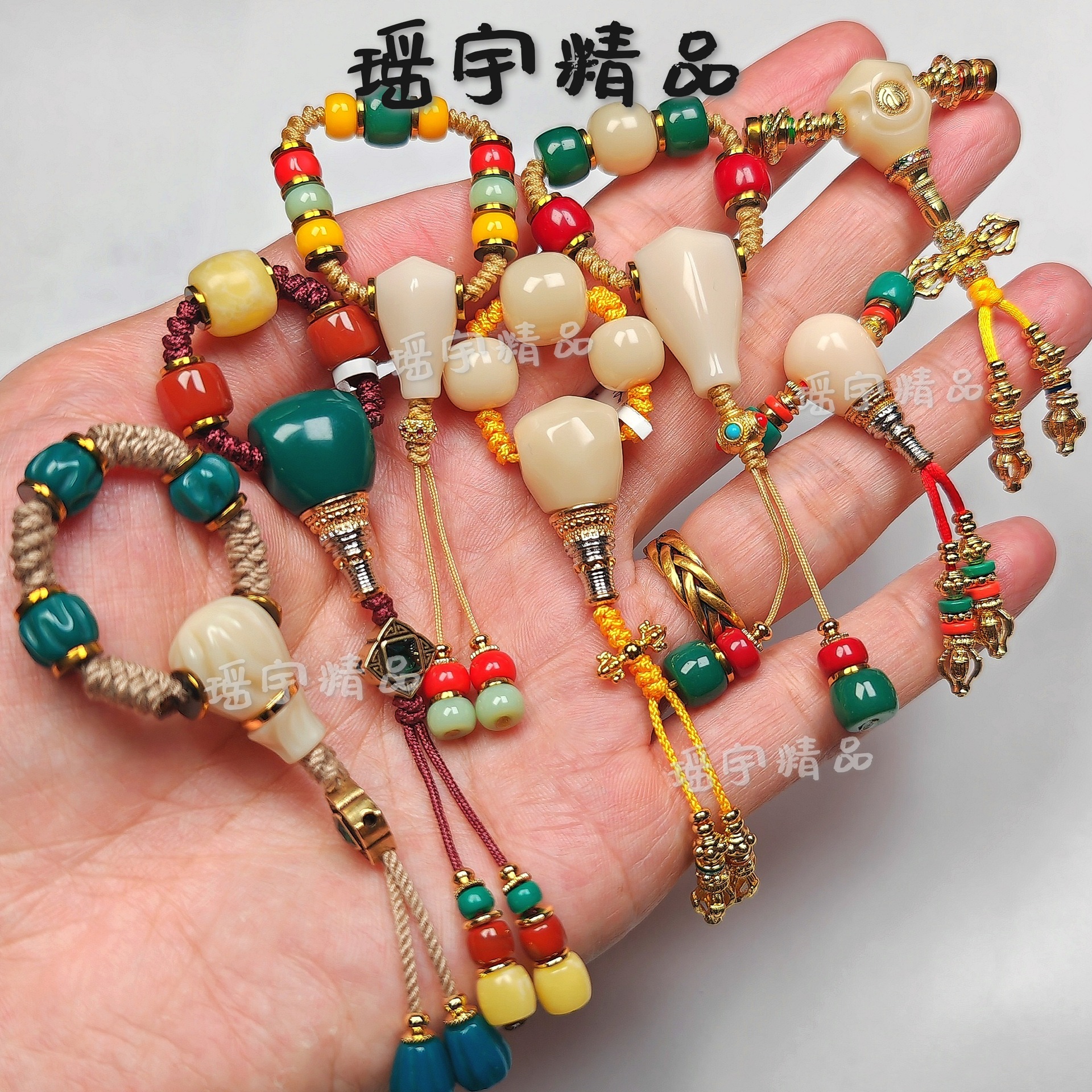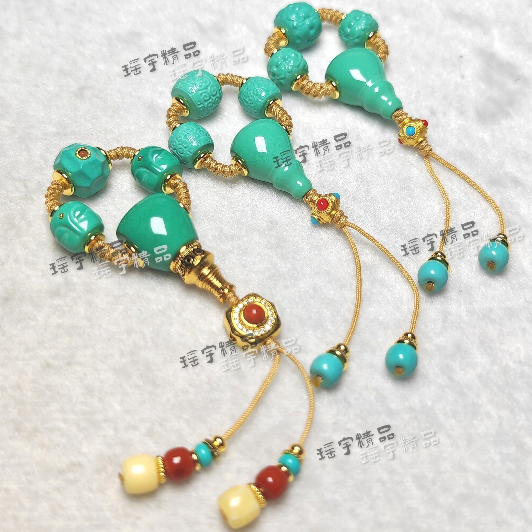 雪巴琉璃三通配饰一整套文玩diy套装配饰佛珠搭配南红蜜蜡套装