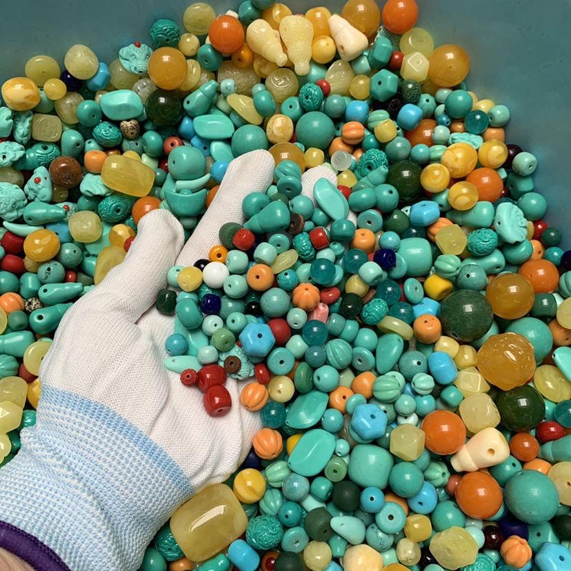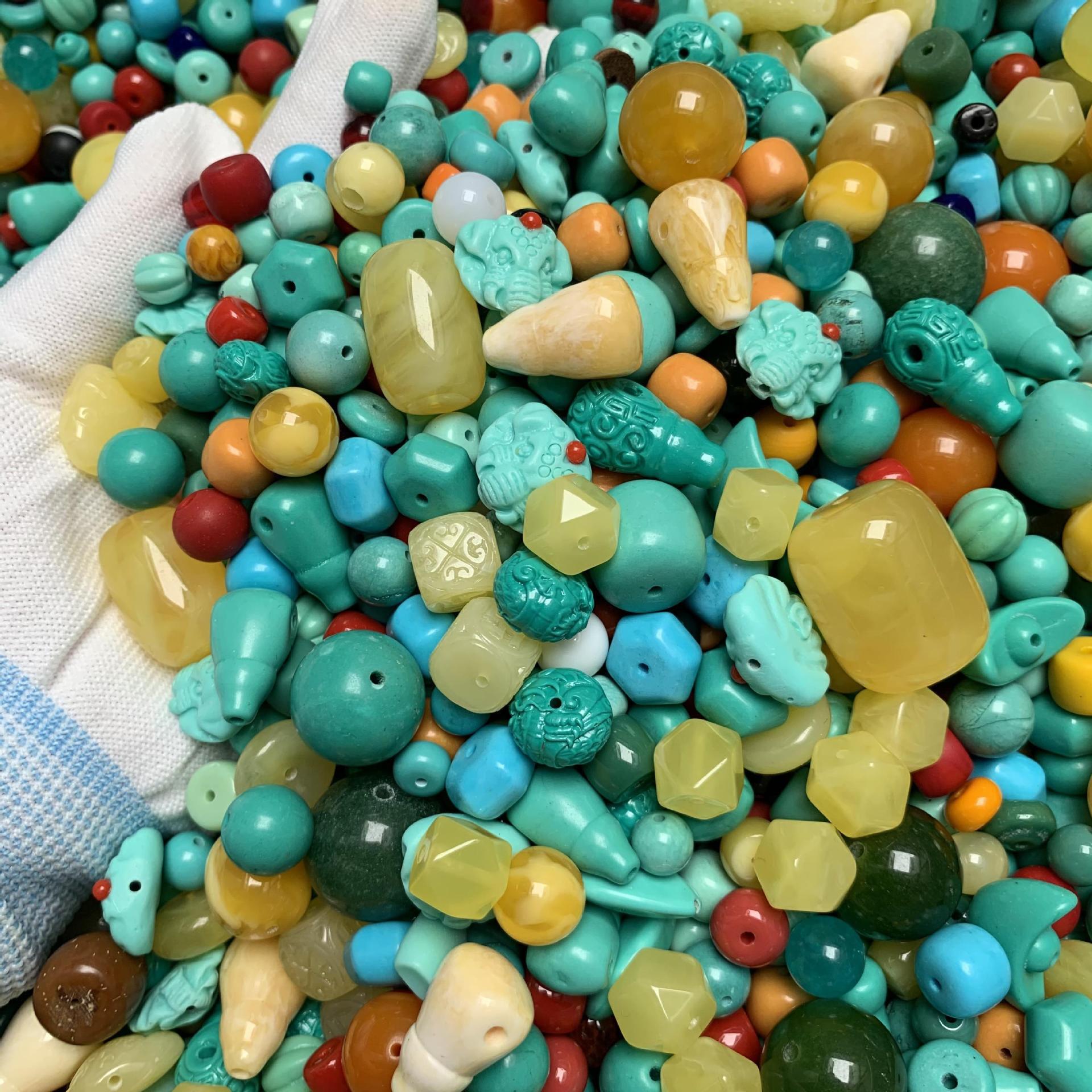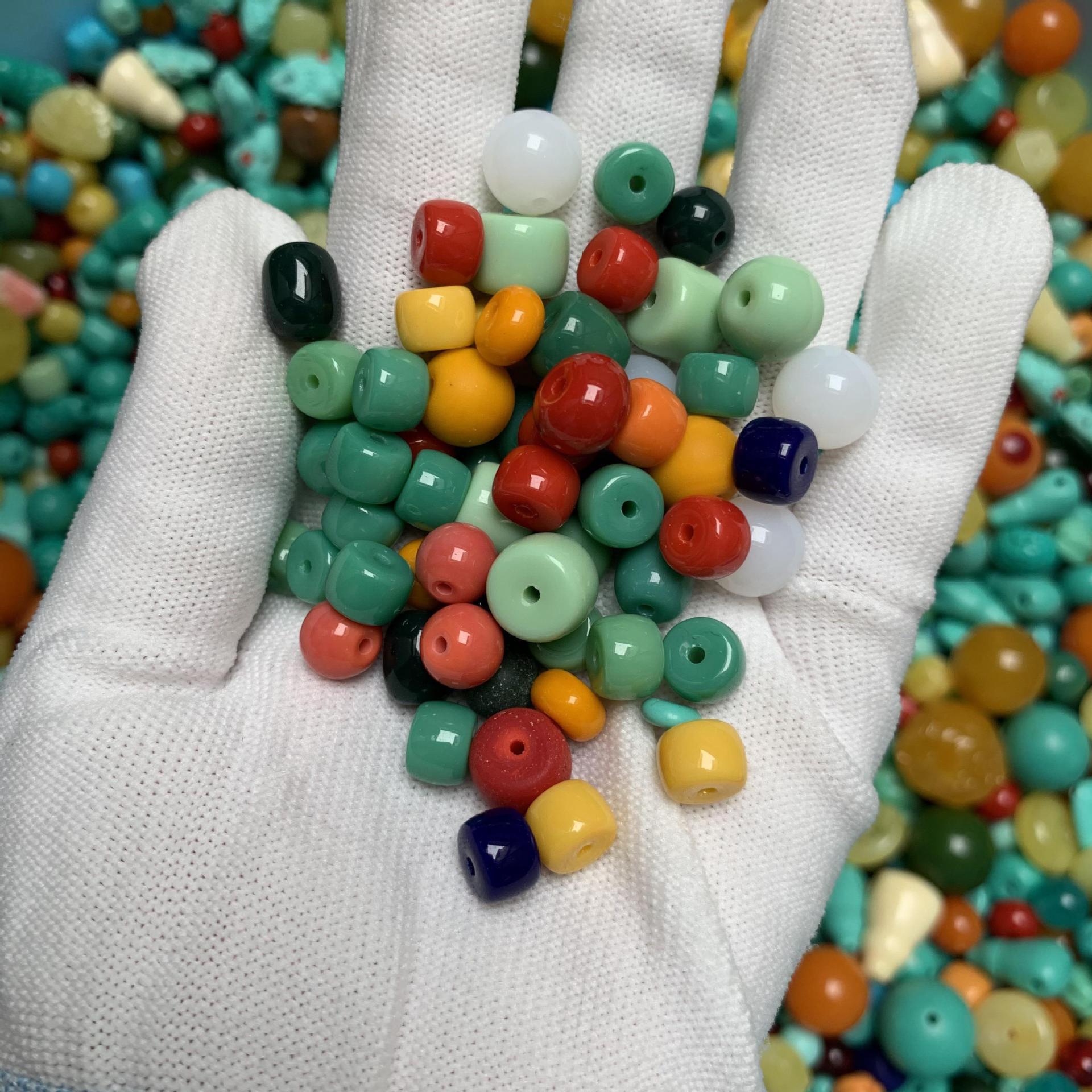 原鉱緑松網花老型珠烏蘭花単珠アクセサリーDIY散珠高磁器緑網花高磁器藍網花