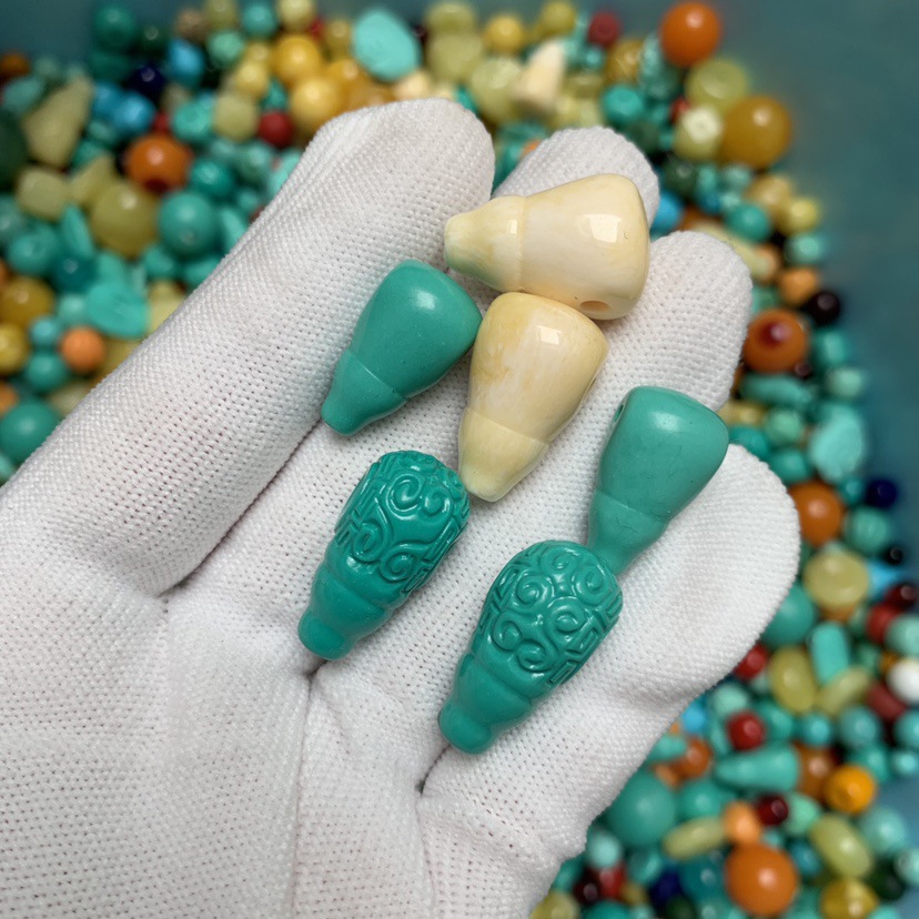 湖北绿松三通配饰全套磷镁矿组合套装文玩diy四件套(盘玩变色)