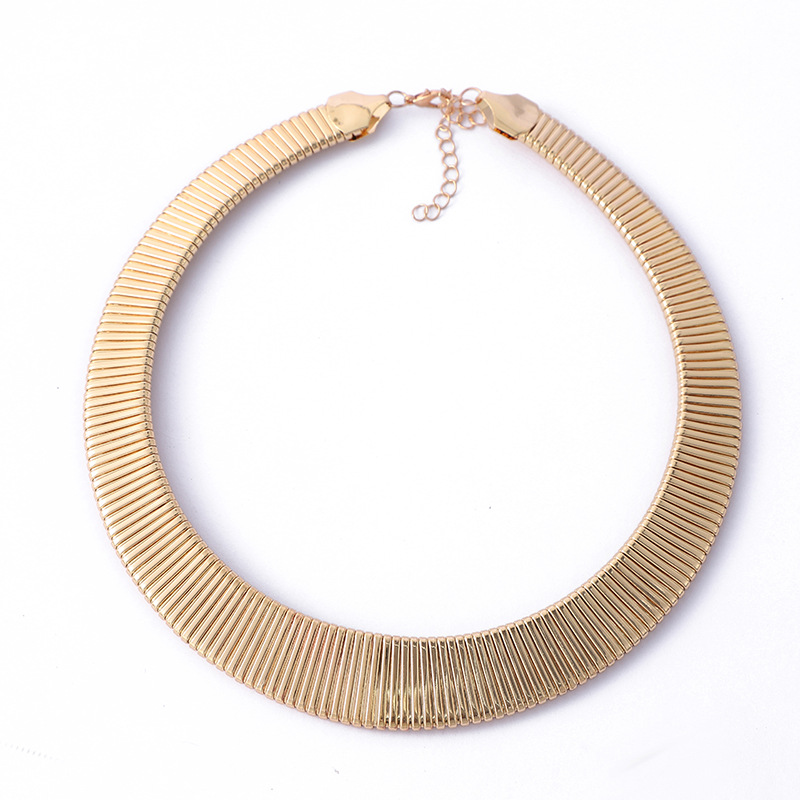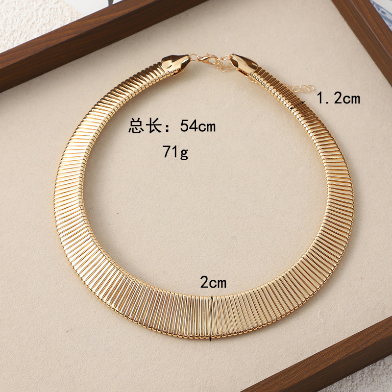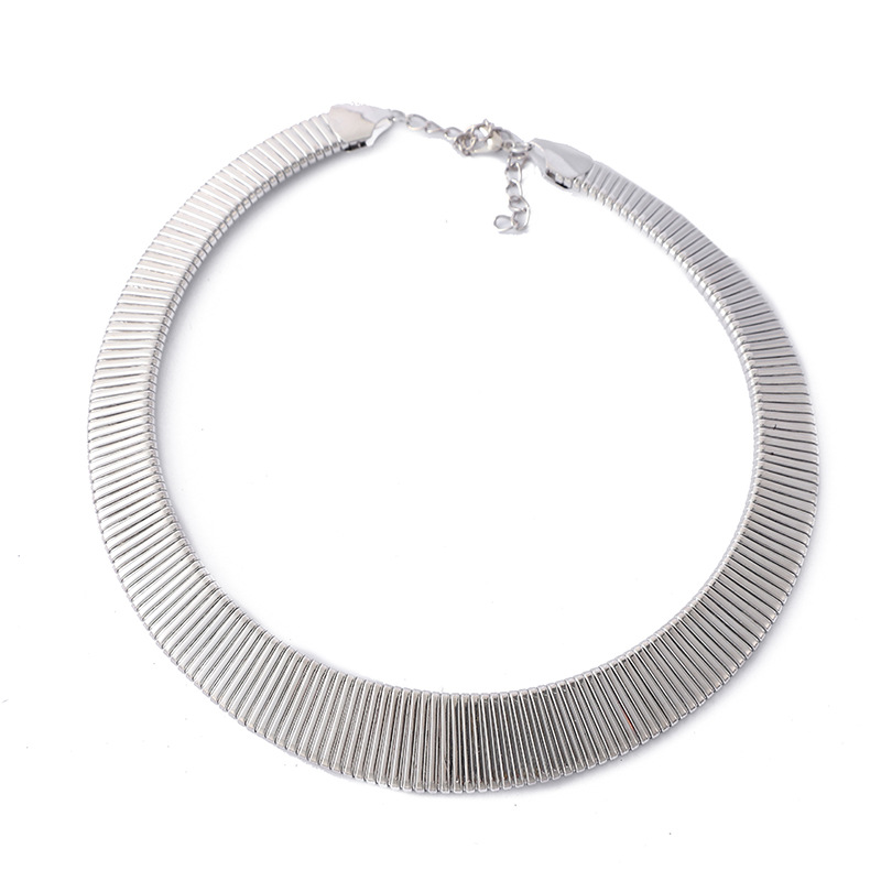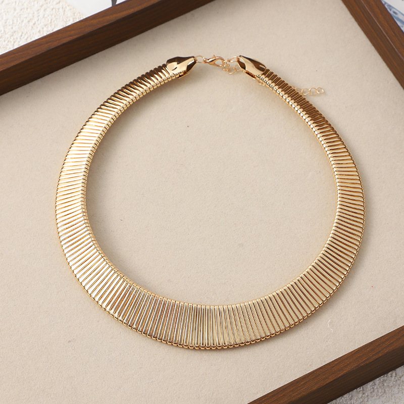 レトロなメタルスタイルのシンプルなリングネックレス伸縮弾性スネークボーンチェーン多用途垂直パターン弾性ワイドカラー
