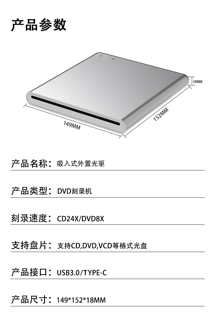 Usb3.0外付け光学ドライブは、ノートパソコン外付けバーナーデスクトップ吸入式高速外付けモバイル光学ドライブを適用します。