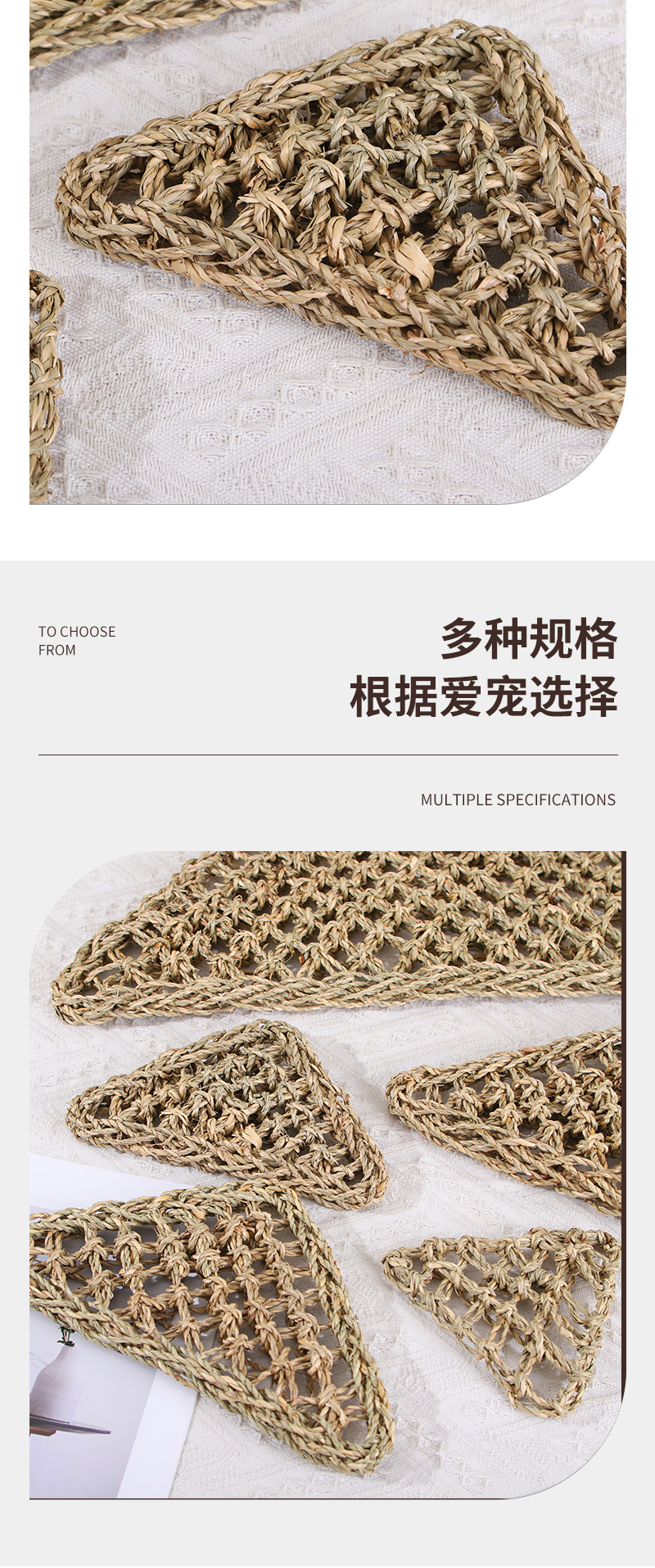 三角形手作り草編みマット異寵動物トカゲ爬行編みマットメーカー卸売りハムスター歯磨きマット