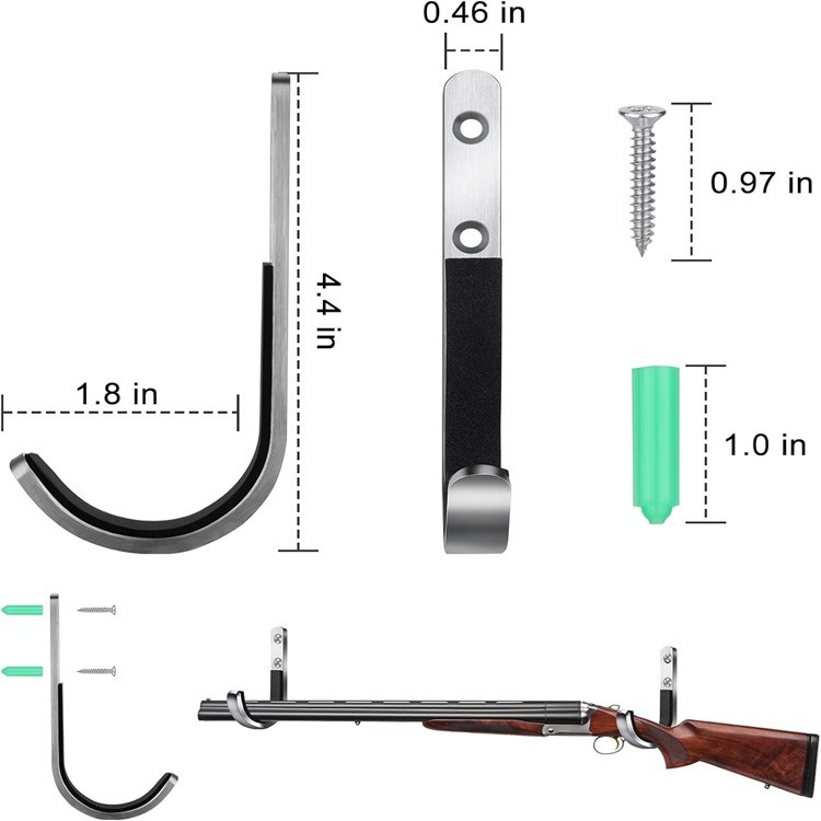 クロスボーダーRifles Shotgun Hooks 2pcs壁掛け式ガンフレーム金属ストレージフックJ型フック