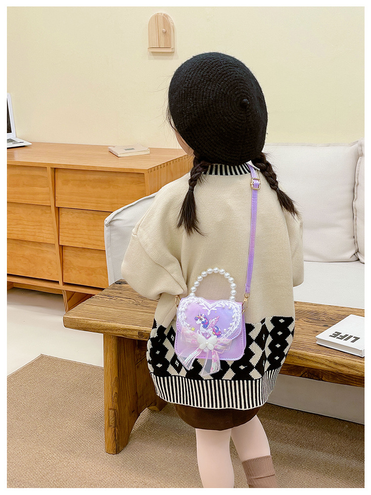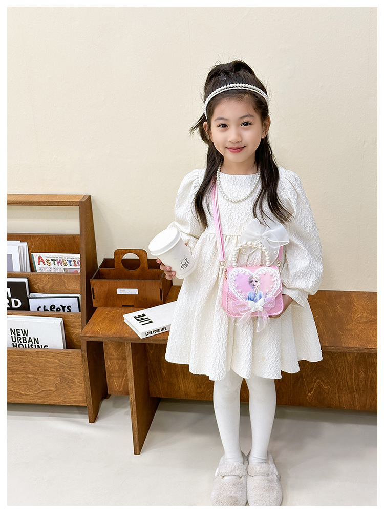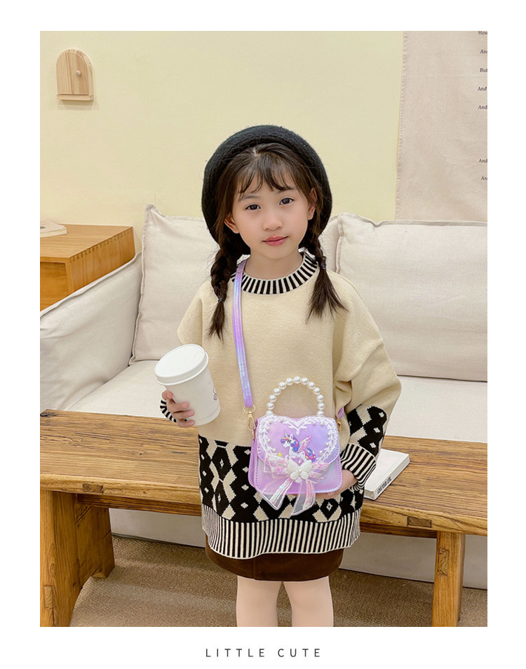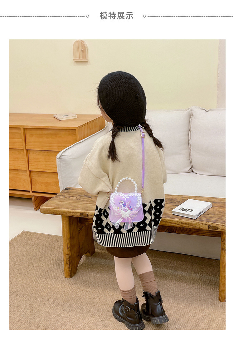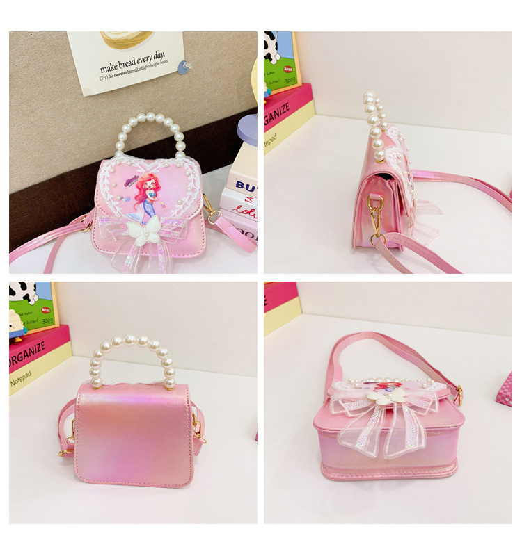 2025新款儿童小香风单肩背包小女孩镜面公主珍珠手提包卡通搭配包