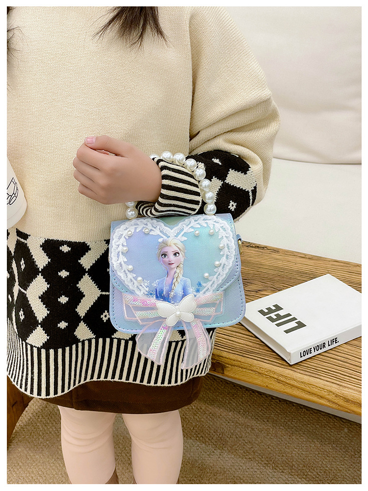 プリンセスエルサバッグ小さな女の子ベビー新年バッグ新しい女の子パールハンドバッグレッドショルダーメッセンジャーバッグ