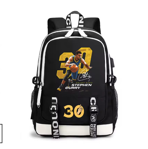 2025プリント学生カバンUSBリュックサック黒色アウトドア旅行カバンは男女に適しています。