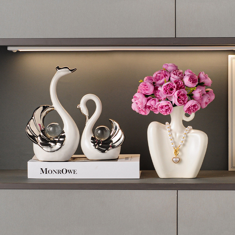 モダンでファッショナブルな家の装飾工芸品家具景徳鎮セラミッククラフト装飾品カップルスワン絶妙な