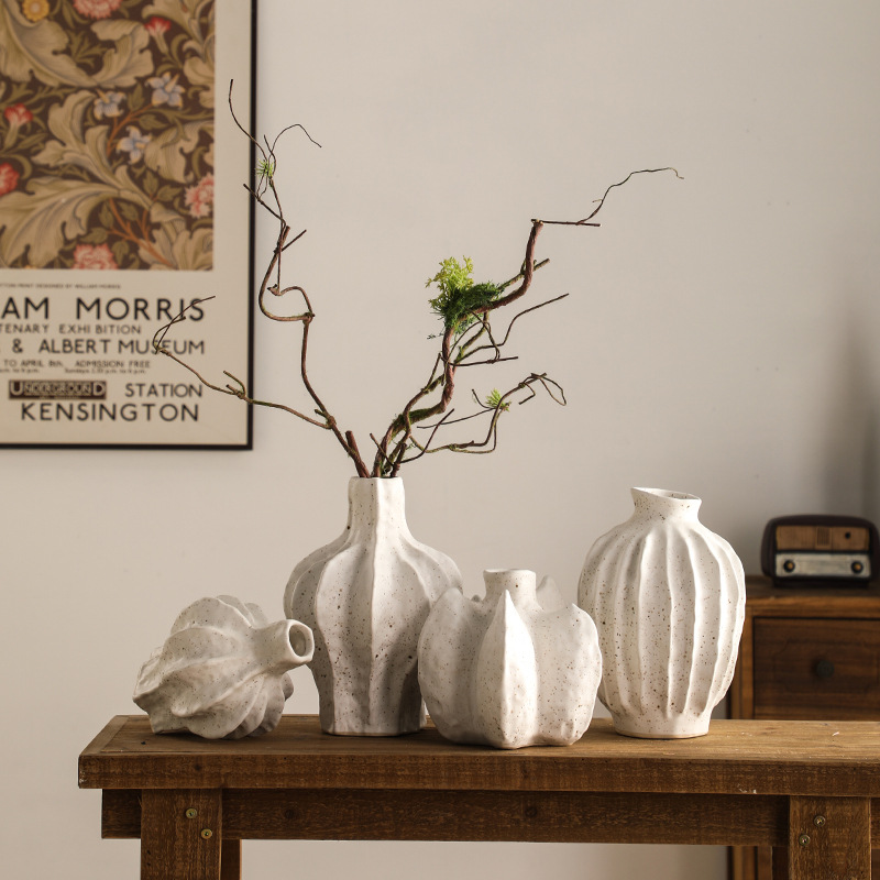 寂風禅意置物レトロレトロ手作り茶室民宿ホテル粗陶艶白色陶磁器花瓶