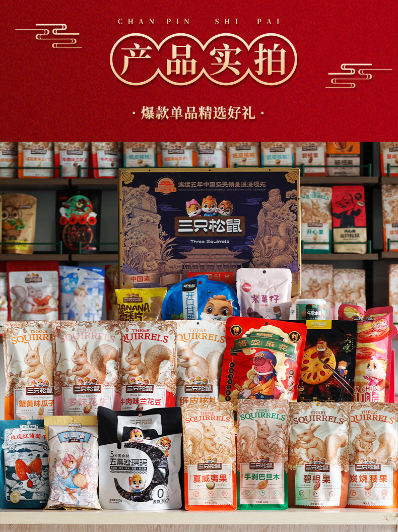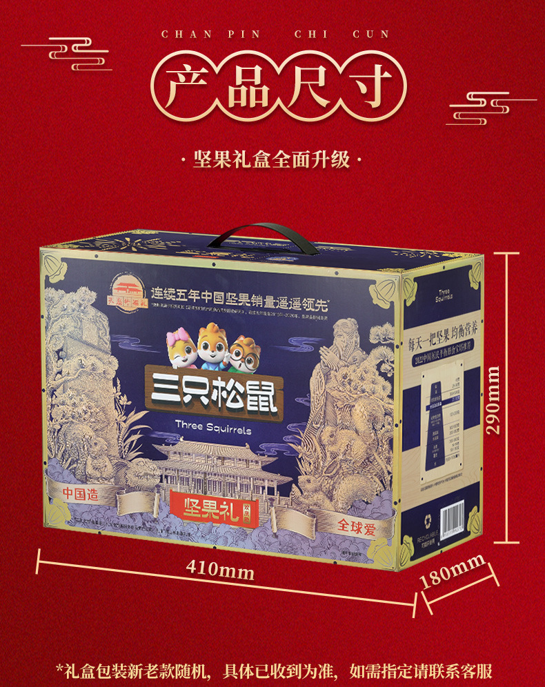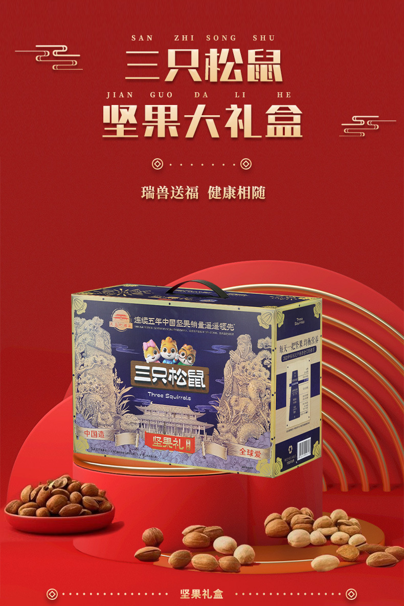 三只松鼠瑞红款坚果礼盒1501g/12袋健康果每日坚果干果大礼包包邮