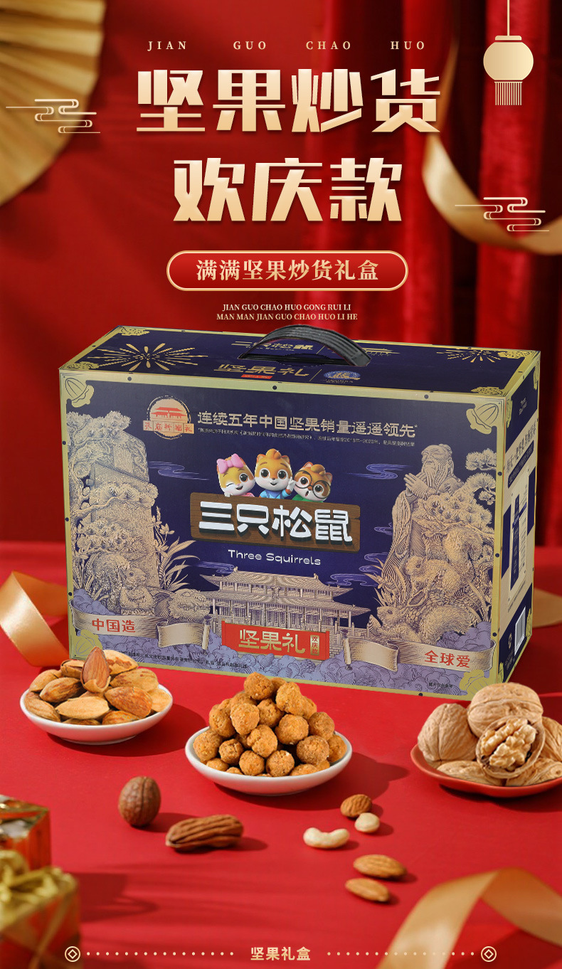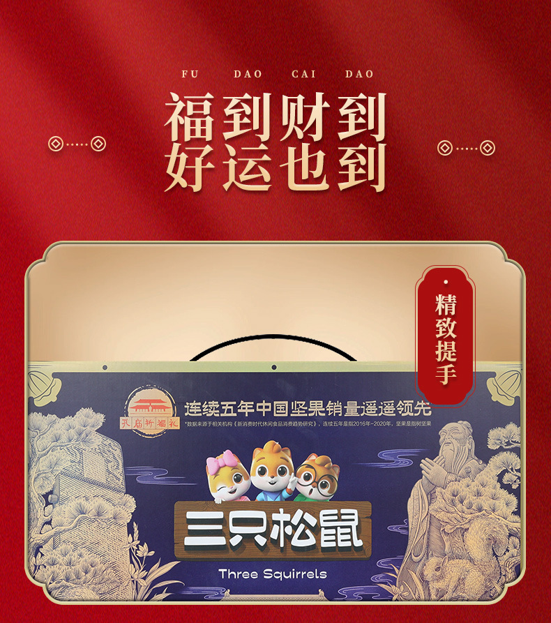 年货新款三只松鼠新年聚富礼坚果礼盒1275g/10袋装零食礼零食礼包