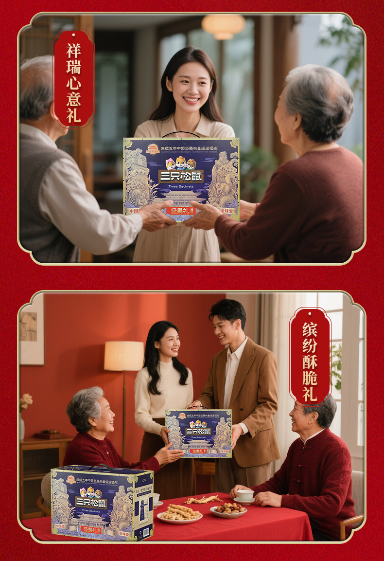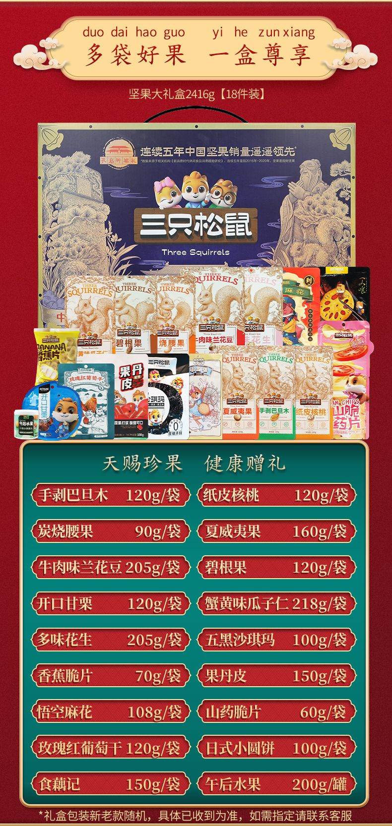リスナッツ三匹の大礼箱国紫金1875g/15袋混合間食大ギフトバッグ