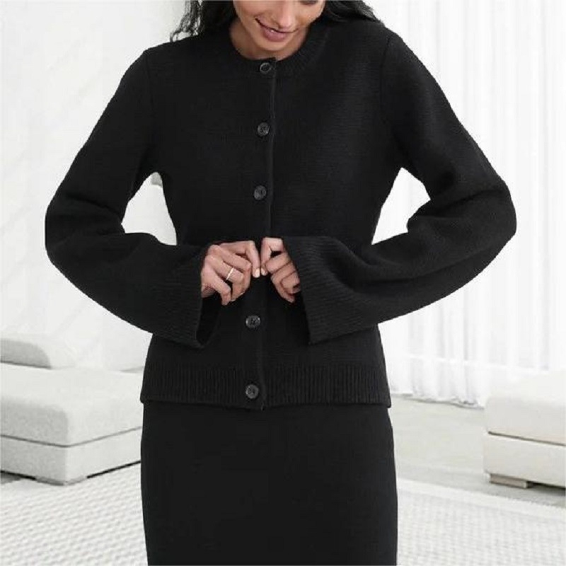 秋冬の女性向けの国境を越えた人気のセーター、新しい無地のルーズでレイジースタイルのランタンスリーブニットレディースカーディガンジャケット