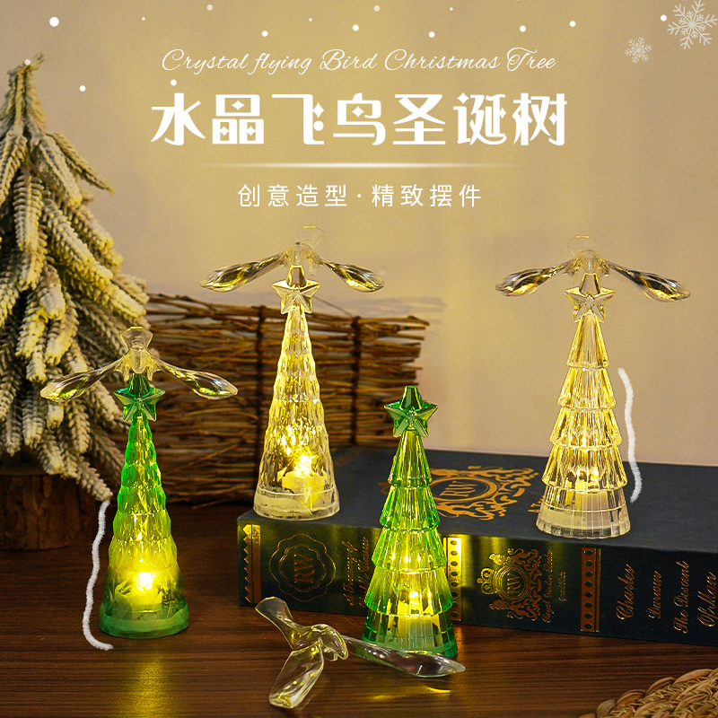 创意水晶飞鸟圣诞树小夜灯派对装饰氛围灯送闺蜜节日礼物桌面摆件