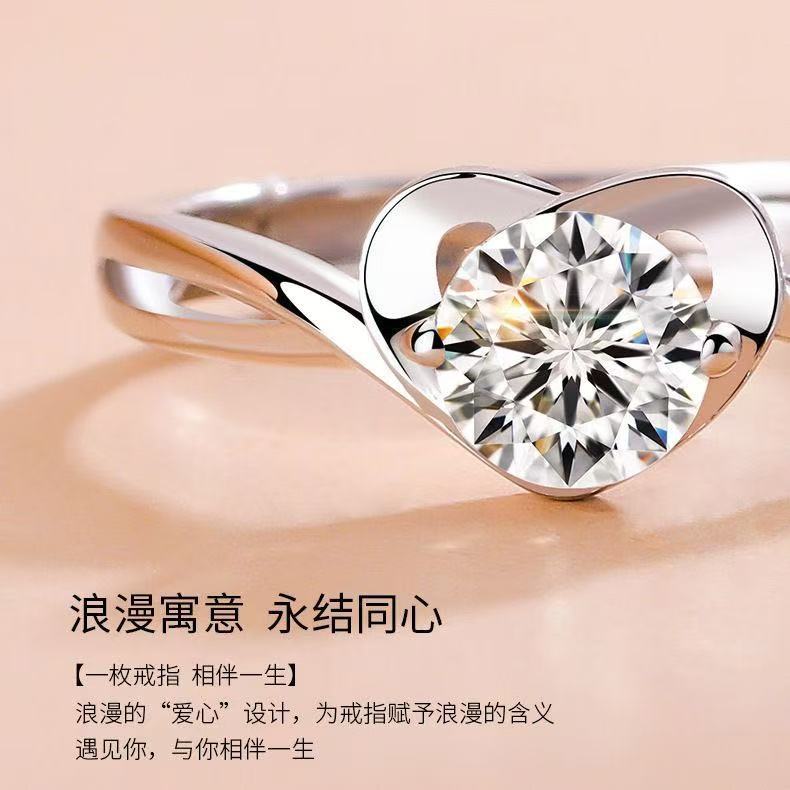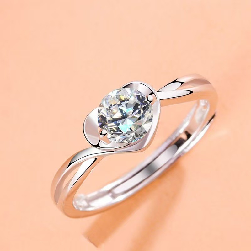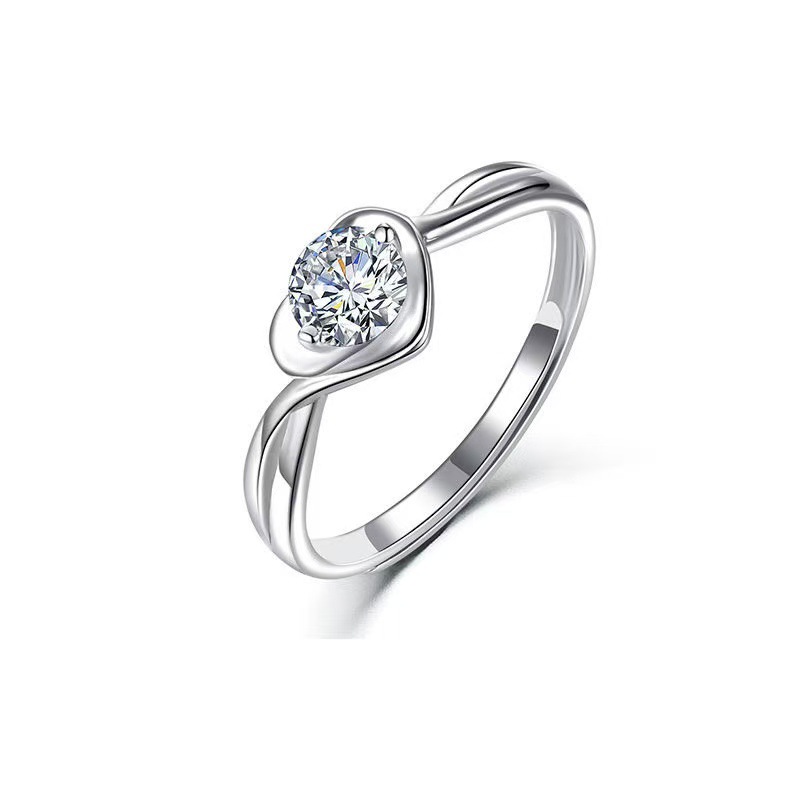 新しいタイプの銀メッキハート型の指輪の女性のモデルはダイヤモンドリングの高級感をシミュレーションします。